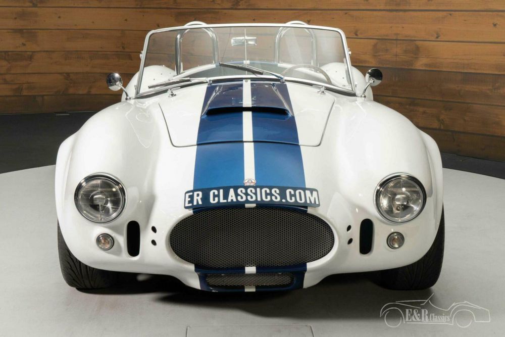 De Cobra Replica die we hier te koop aanbieden is een echte eyecatcher. Van het witte lakwerk met de racing stripes tot aan de lichtmetalen sportvelgen en de sidepipes. Het totaalplaatje van deze muscle car klopt helemaal. Het interieur verkeert in een nette staat en is uitgerust met donkerblauwe kuipstoelen met rode veiligheidsgordels.