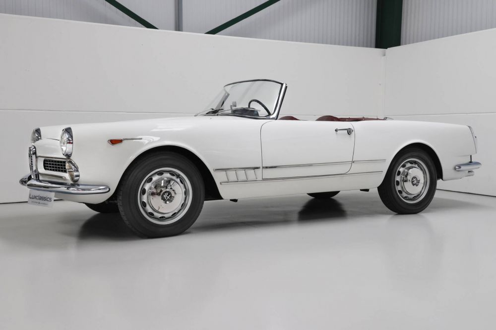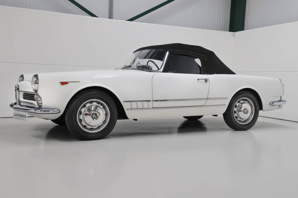 It was available as a standard 4-door saloon, but also as a Bertone-styled coupe, and as an elegant 2-seater spider, designed and built by Touring of Milan.