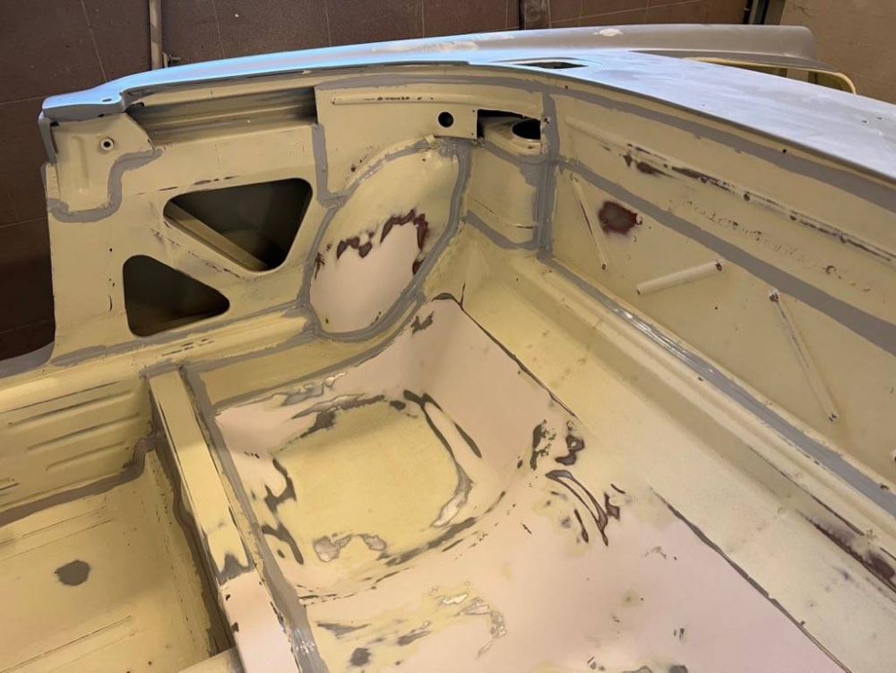 Currently, the body has been painted in a very elegant shade of dark bronze, which was available in period as a specialty taken from the Maserati colour range. We think this will combine very well with a warm, tan leather.