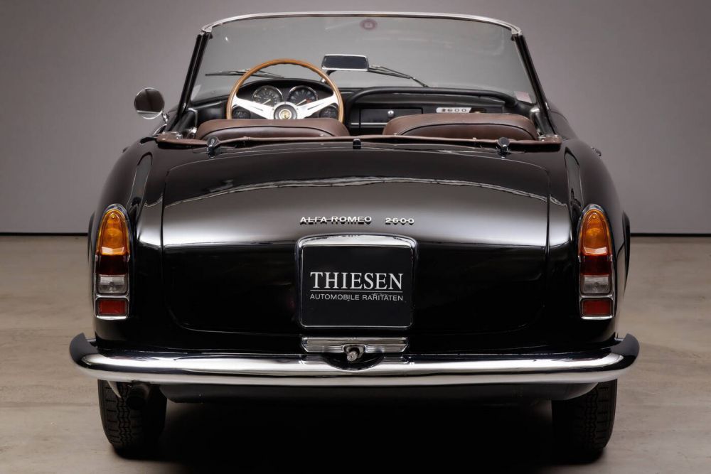 This Alfa Romeo 2600 Spider combines Italian car design of the 1960s with sporty driving performance. With its powerful 2.6-litre six-cylinder engine and a 5-speed manual gearbox, this convertible was the absolute top model from Alfa Romeo.