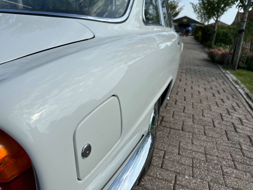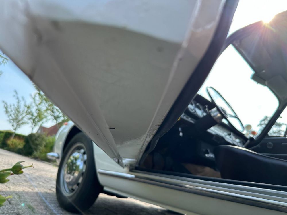 Anche la combinazione di colori può essere definita molto di buon gusto, la carrozzeria è verniciata di bianco. Un contrasto molto bello con i rinnovati interni in pelle marrone scuro forniti all'epoca da Meneer Sam di Apeldoorn.
