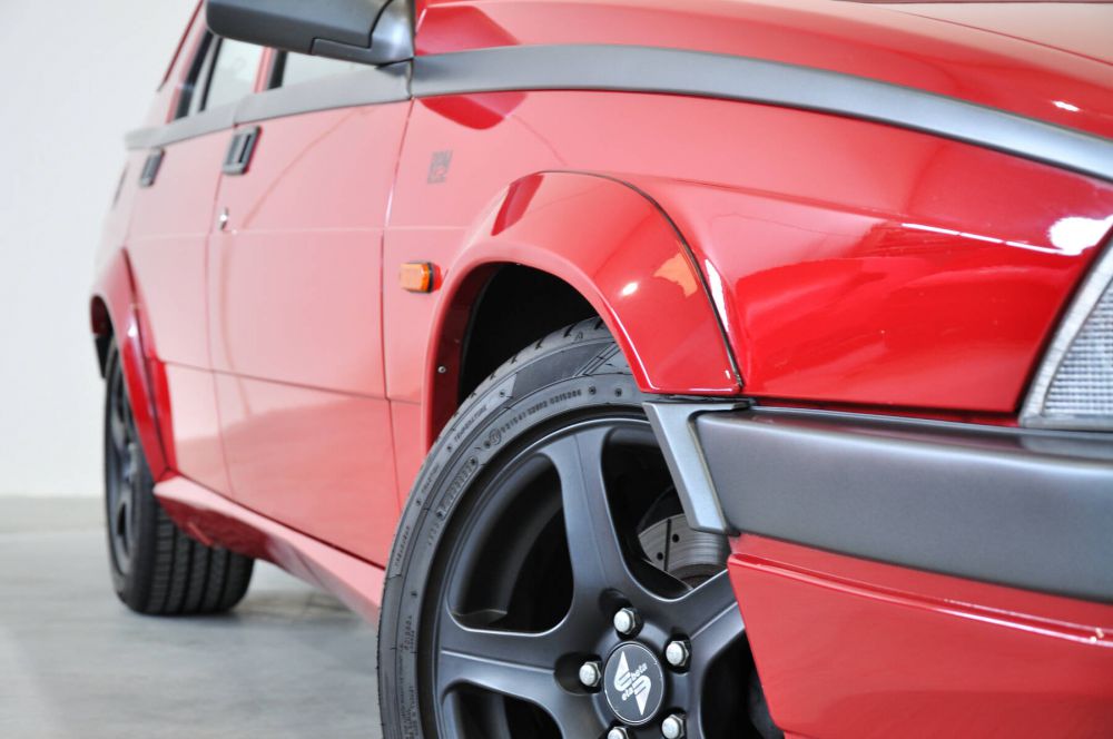 Stupenda Alfa 75 2.0TS non catalica, colore rosso Alfa 130, il più ricercato dagli appassionati del marchio, iscritta ASI nel 2018 con CRS, ottimamente manutenzionata fin dall’origine, con assetto sportivo e qualche ulteriore chicca: cerchi neri da 15 omologati a libretto con pneumatici pressoché nuovi, 4 dischi freno baffati e forati con pastiglie speciali Tarox, ammortizzatori Koni gialli con molle nuove, collettori di scarico con bendatura isolante.