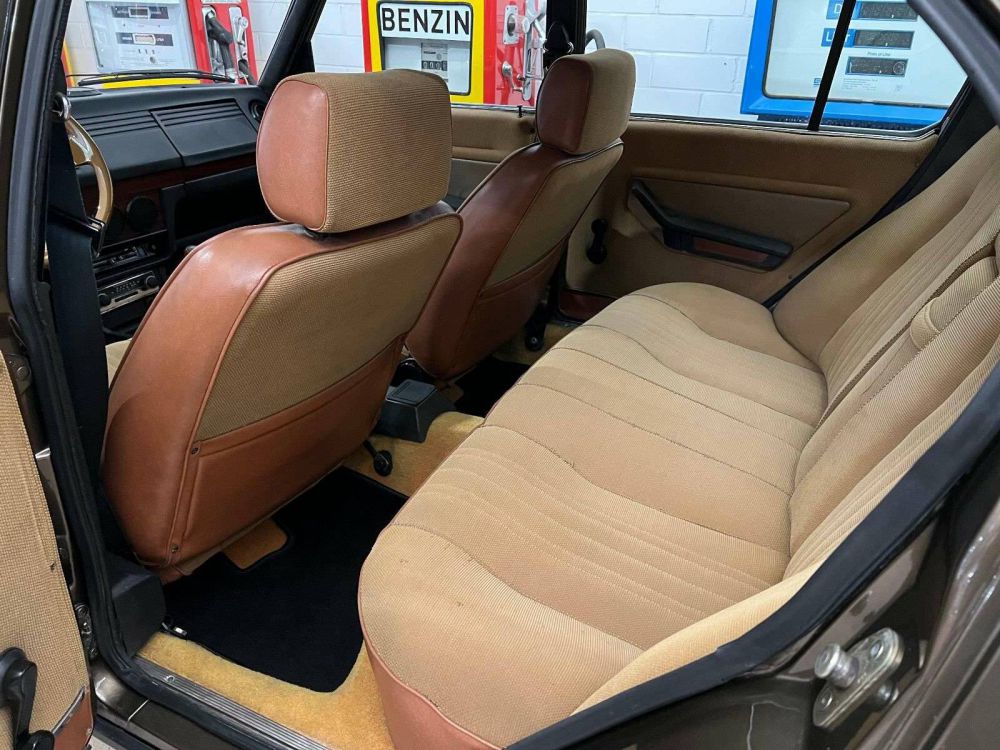 Innen befindet sich die Alfetta für über 40 Jahre in einem sehr guten Zustand. Lediglich die hinteren Sitze sind von der Sonne oben leicht ausgeblichen. Die Türblätter vorne haben teils leichtere Flecken. (Ersatztürblätter sind dabei) Armaturenbrett, Sitze und Fahrzeughimmel sind tip top.