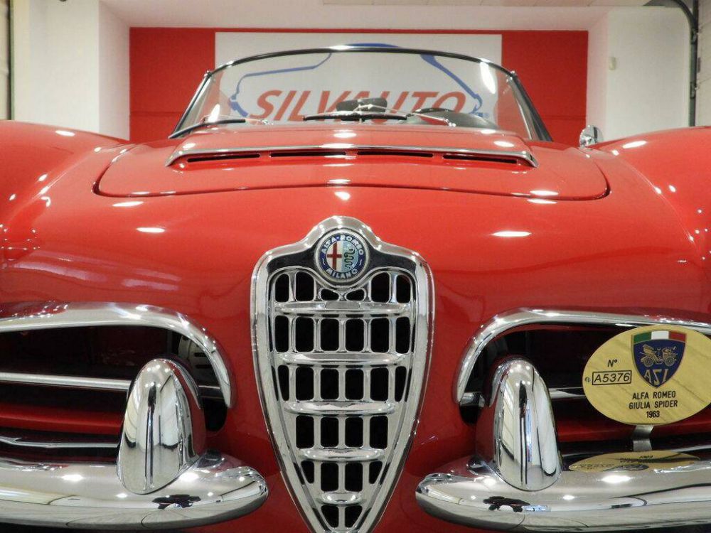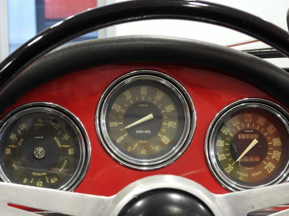 EXCELLENT EXAMPLE OF ALFA ROMEO GIULIA SPIDER 1600 BORN AS AN EVOLUTION OF THE GIULIETTA SPIDER IT HAD SOME DIFFERENCES COMPARED TO THE LATTER, SUCH AS THE AIR INTAKE ON THE BONNET (NECESSARY TO HOUSE THE NEW ENGINE AND FOR THE WORDING 1600 ON THE TAIL, OTHER SMALL DIFFERENCES CAN BE NOTED FROM THE STEERING WHEEL, NOW WITH THREE SPOKES, AND IN THE GRAPHICS OF THE INSTRUMENTS