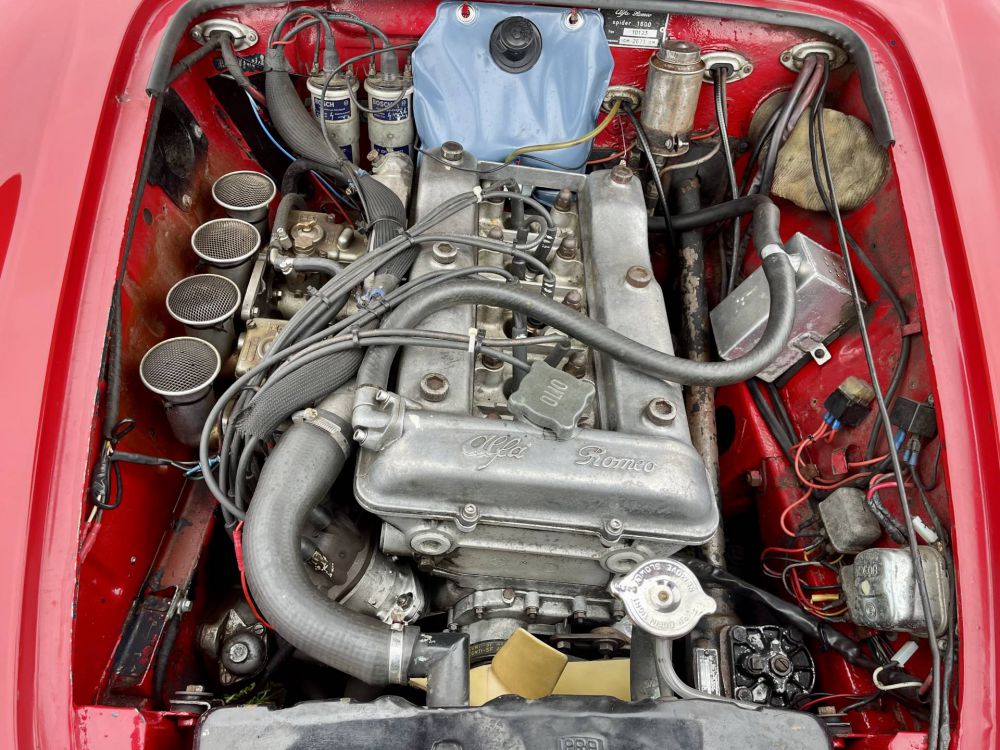 Goede en originele Giulia Spider 1600 Wagen is voorzien van een 1600 GTA motor !!! Dit is uniek Vooraan werden de remtrommels aangepast naar schijfremmen. Good and original Giulia Spider 1600 Car is equipped with a 1600 GTA engine !!! This is unique Front brake drums were modified to disc brakes. Bonne et originale Giulia Spider 1600 La voiture est équipée d'un moteur 1600 GTA ! !! C'est unique Les tambours de frein avant ont été modifiés en freins à disque.