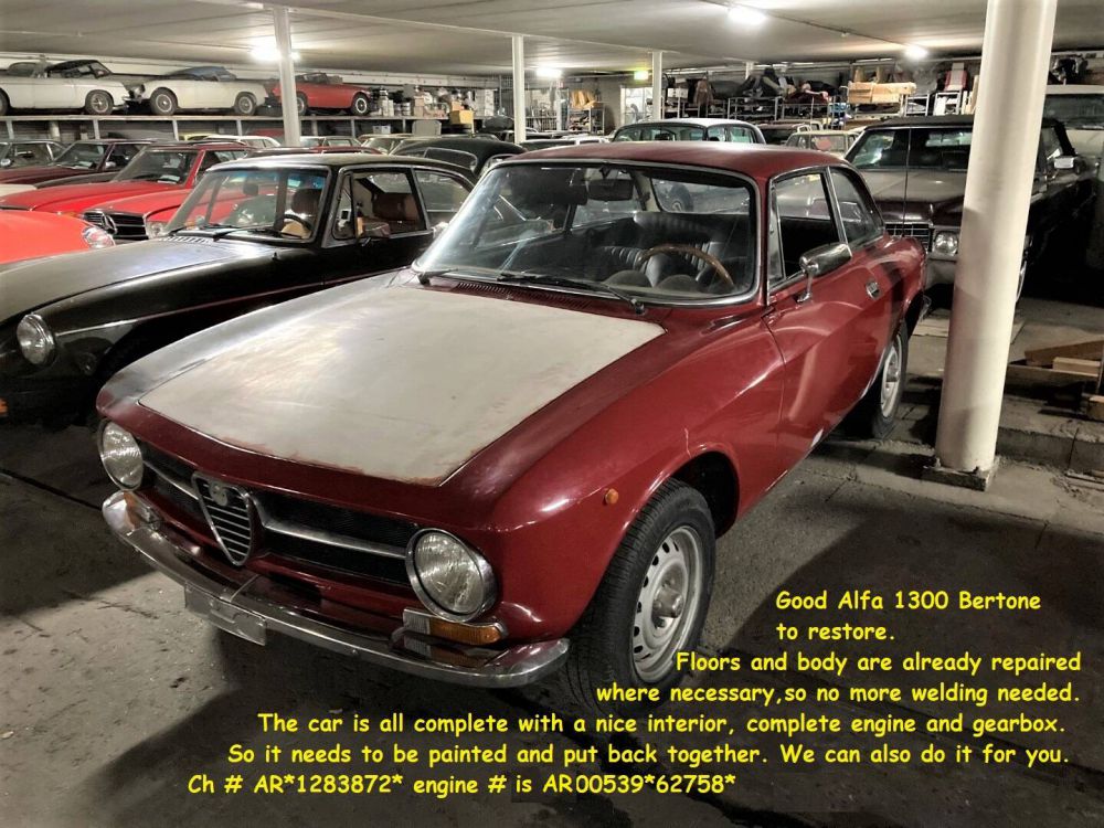 Good Alfa 1300 Bertone to restore. Floors and body are already repaired where necessary, so no more welding needed.The car is all complete with a good interior, complete engine and gearbox.So, it needs to be painted and put back together. We can also do it for you. Biggest choice in REAL Classic Cars in the Stolze Collection with more than 450 cars in stock ! From a project to perfect.