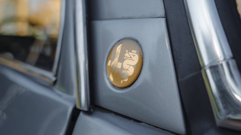 This Giulia has an aluminum fuel tank with a larger capacity in the back of the trunk due to the historic rally