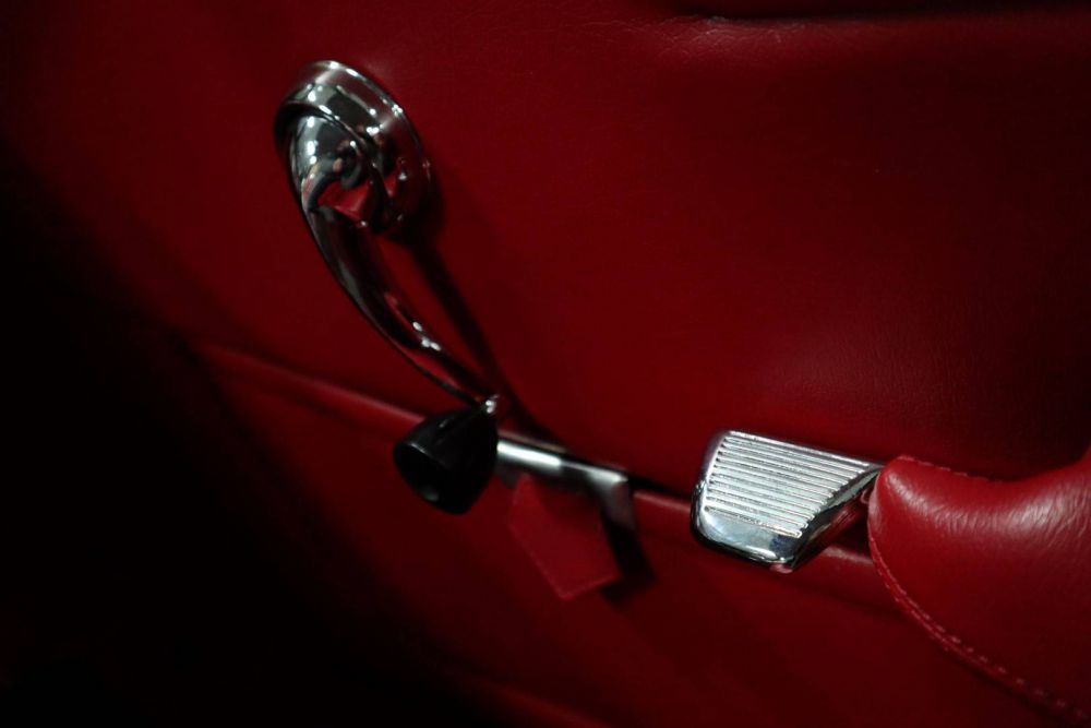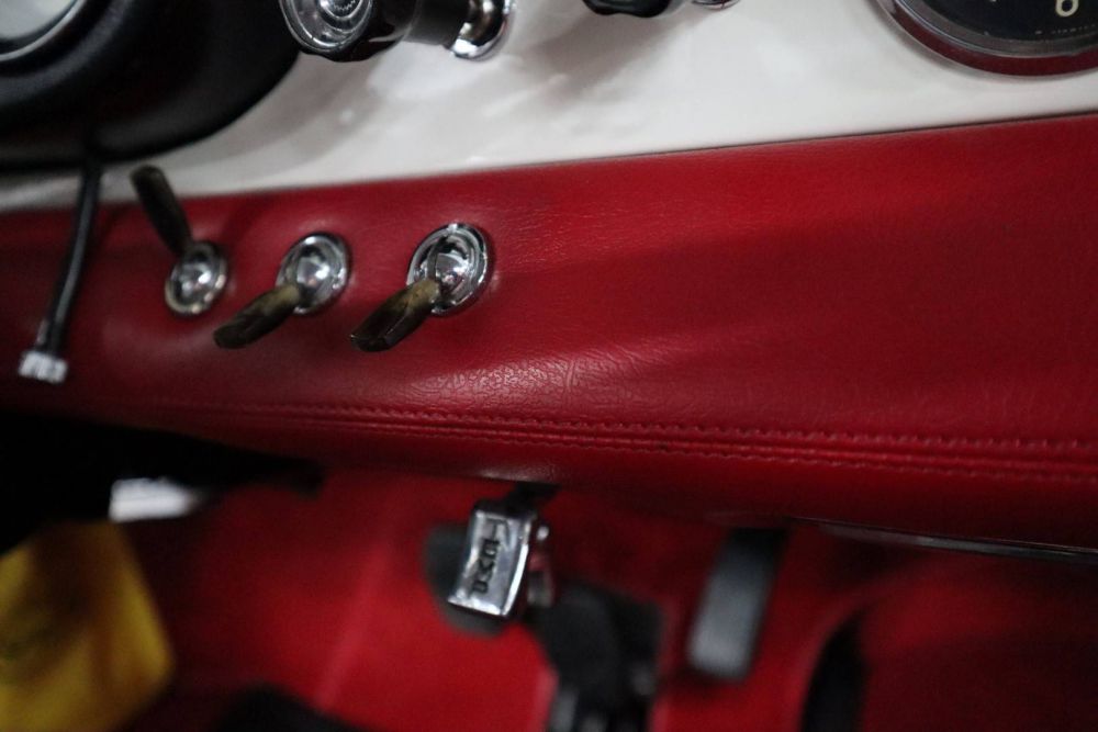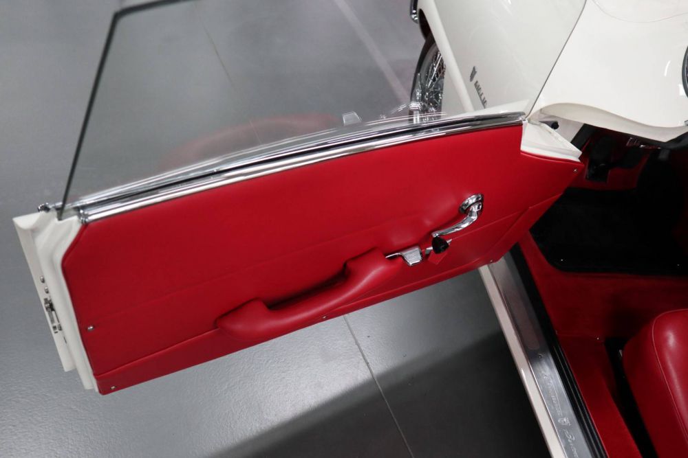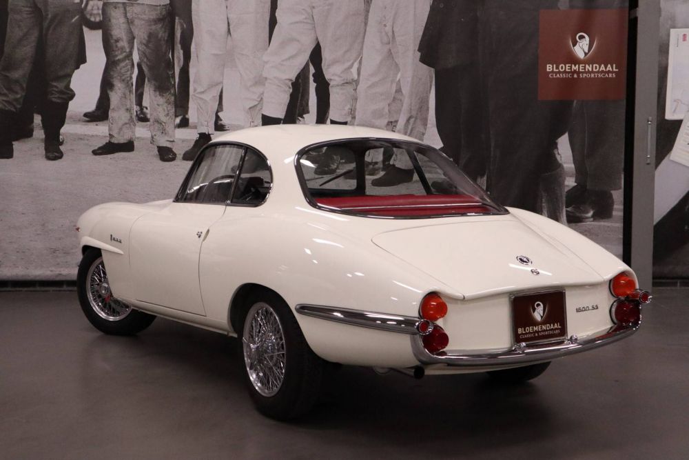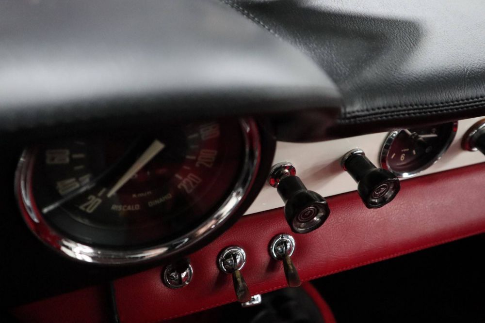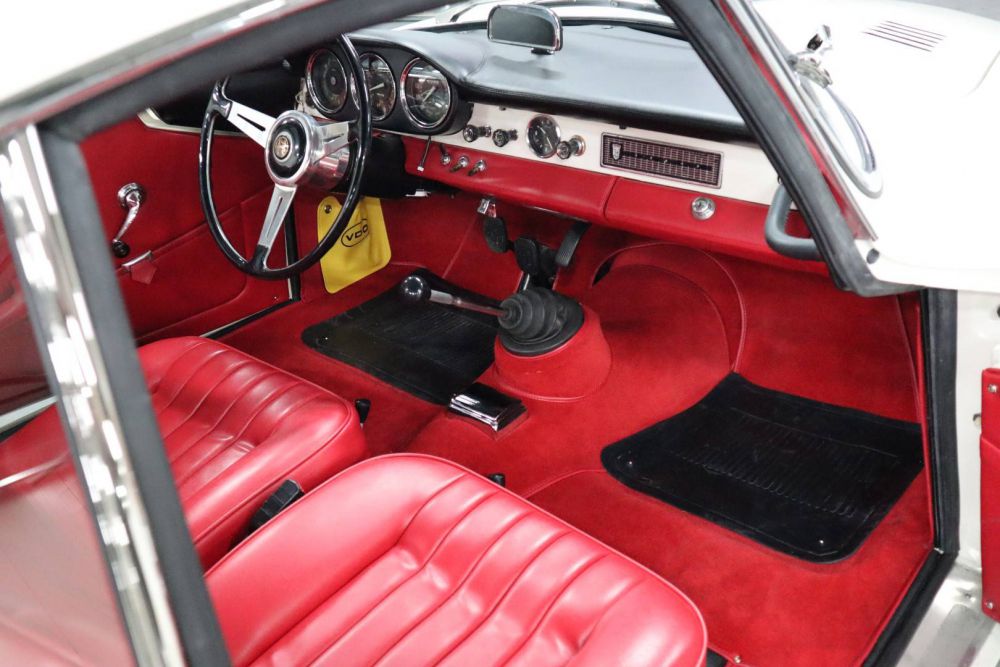 This Giulia Sprint Speciale is one of the last copies delivered and was registered in 1966. It is the 1600cc. version, which means that the 116 bhp 4-cylinder DOHC engine, connected to a wonderful smooth shifting five-speed gearbox, only has to move 860 kg. All this is done with such flexibility and ease of use that every kilometer is a true joy. The great enjoyment also continues when you see the beautiful interior, where every detail proves that the total restoration that this car has recently undergone, has been one of a high class. We personally kept an eye on this restoration and many photos testify to a thorough “bare metal” and professional approach. After it was fineshed, the car only made the test kilometers and we now have a great Giulia SS on display. And we are very happy about this, because an SS of this quality is very hard to find.