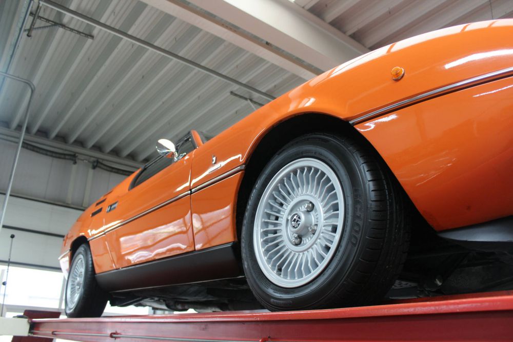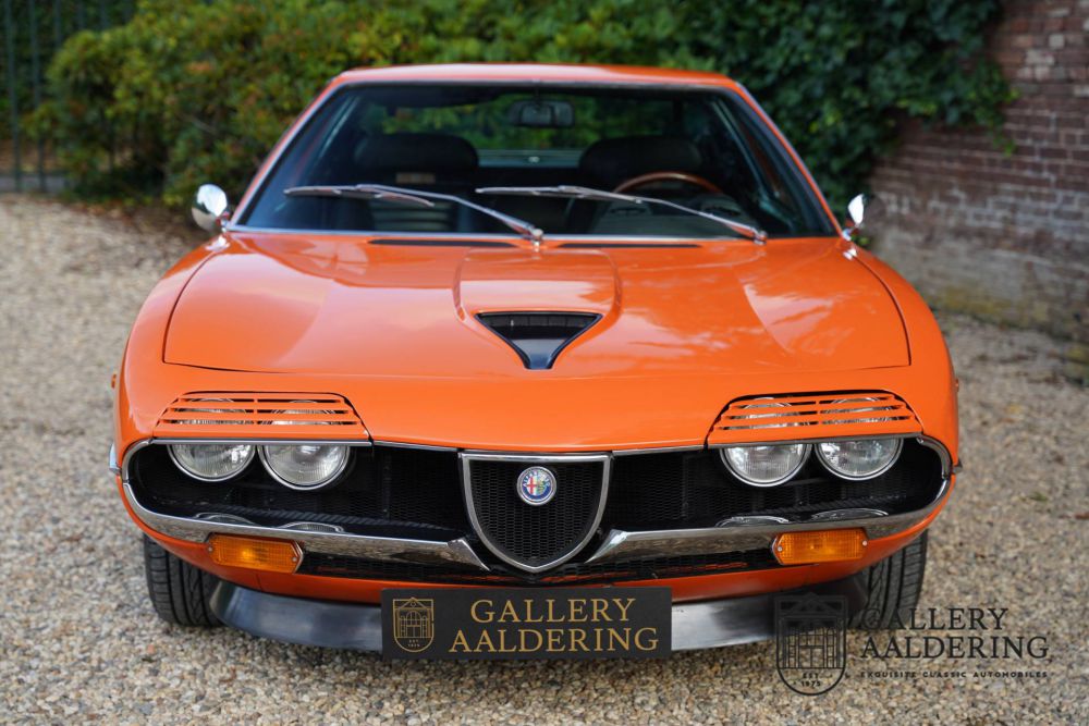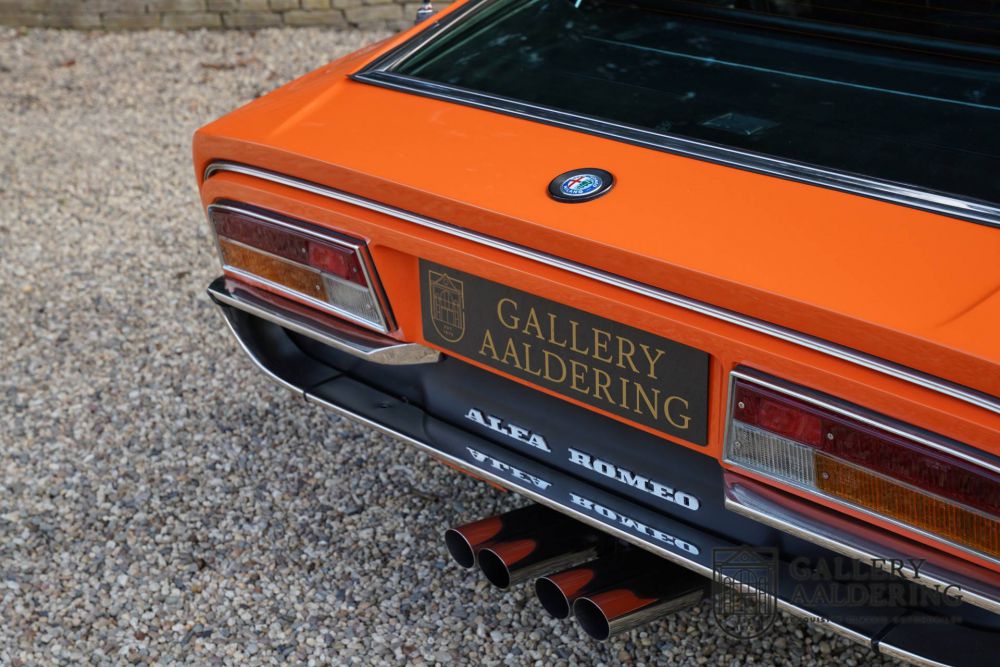 This Montreal dates from 1974 and was delivered in the beloved color orange, although it sounds much nicer in Italian: Arancio. According to Archivio Storico Alfa Romeo records, the car was built on December 31, 1972 and delivered to the first customer in Frankfurt on June 25, 1973.