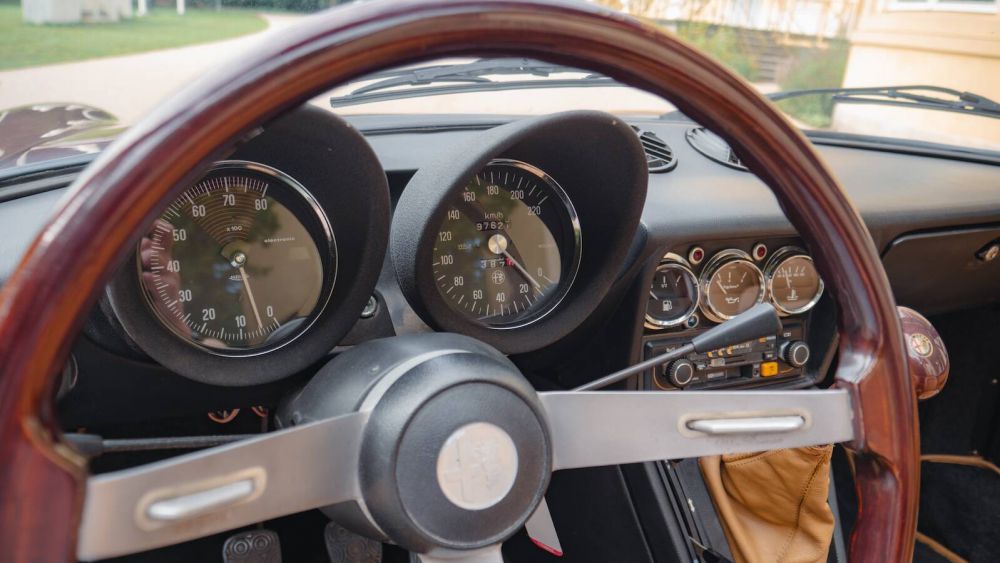 The interior has Camel leather seats and mats with Alfa logo and camel piping.