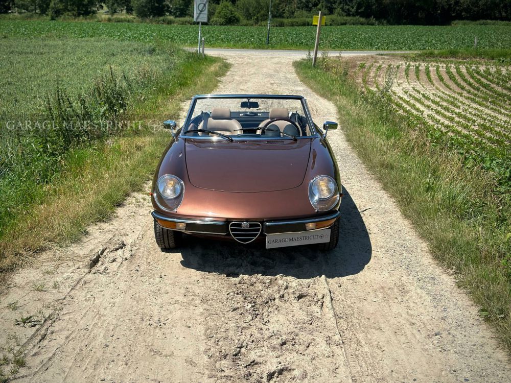 An original Dutch delivered car, 60.000 warranted km's and just 3 private owners from new Presented in striking and original Bronzo Metallizzato AR842 over a Beige leatherette upholstery An extremely solid and original car, having been preserved with anti-corrosion wax oil and believed to only have been resprayed once Will be supplied with a fresh service prior to delivery Benefitting from a nice history file containing numerous invoices of past servicing works Currently Dutch registered, still with its original reg plate GY-73-RR Probably one of the best available Spiders on the current market