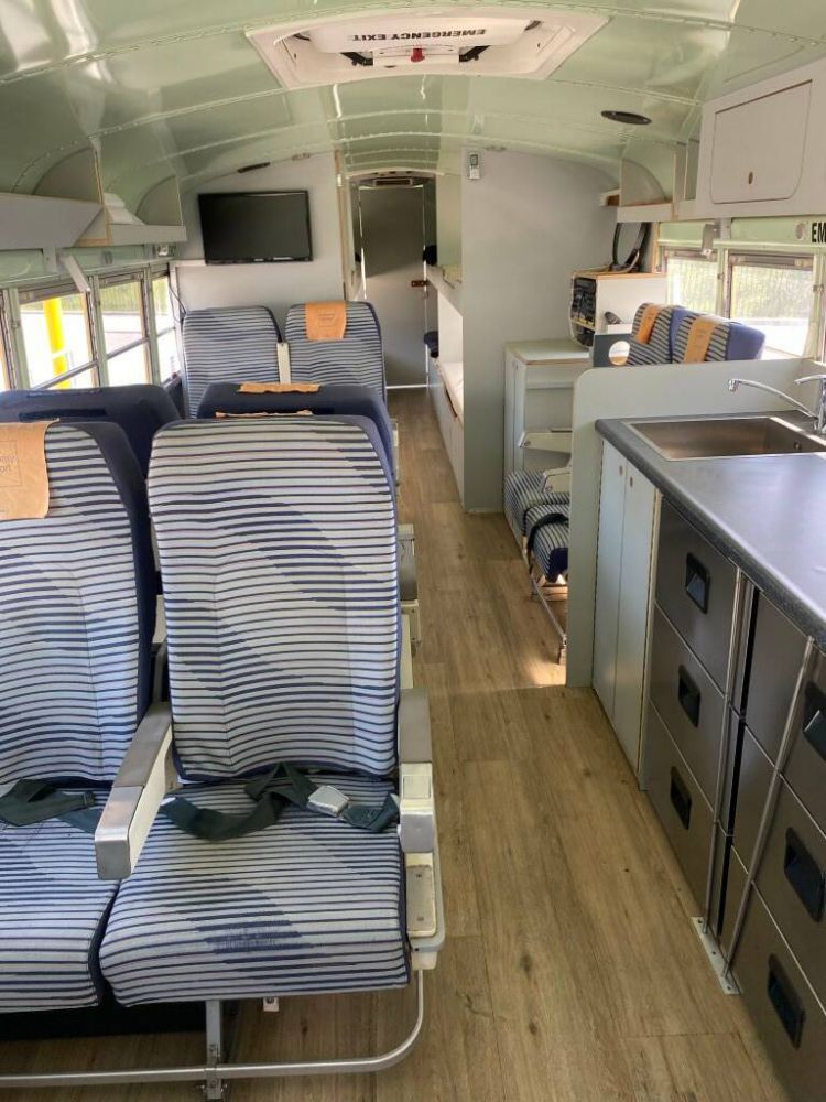 Beautiful International 3800 DT466E American school bus from 1997. Beautifully furnished interior with: 8 sleeping places, 8 chairs, toilet, sink, professional cooling, Victron energy installation, power steering, new floor and air conditioning,The bus has a Kubota generator. A very good bus / camper. Truck driving license C is required to drive it. Biggest choice in REAL Classic Cars in the Stolze Collection with more than 450 cars in stock ! From a project to perfect.