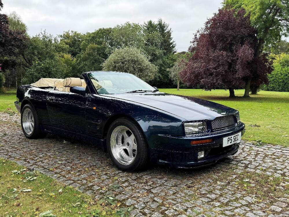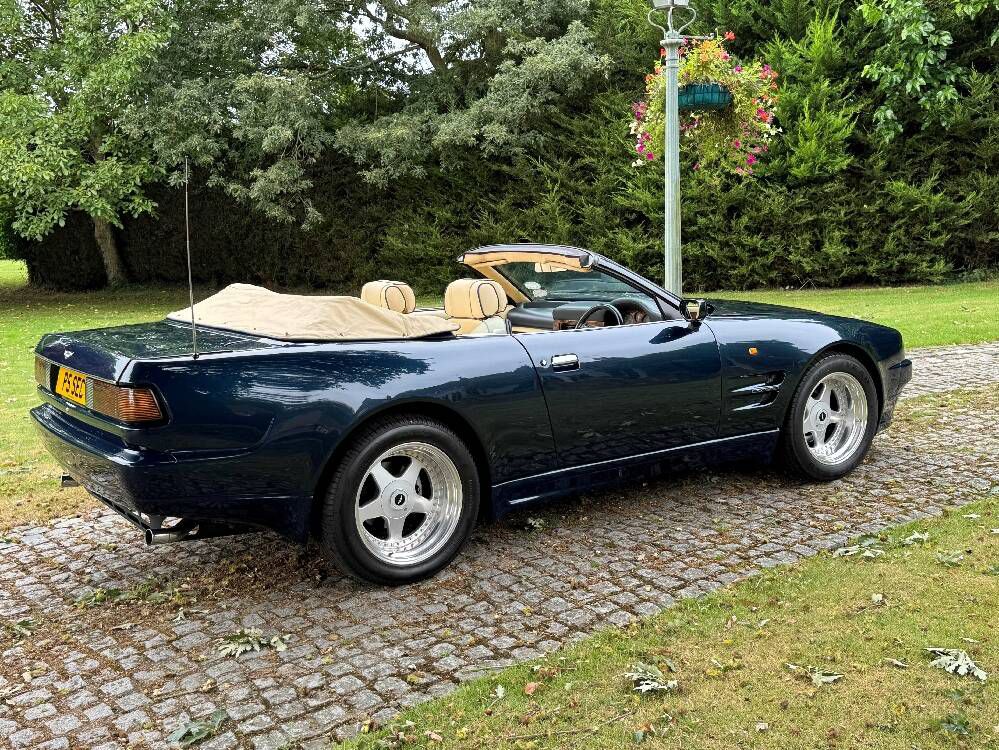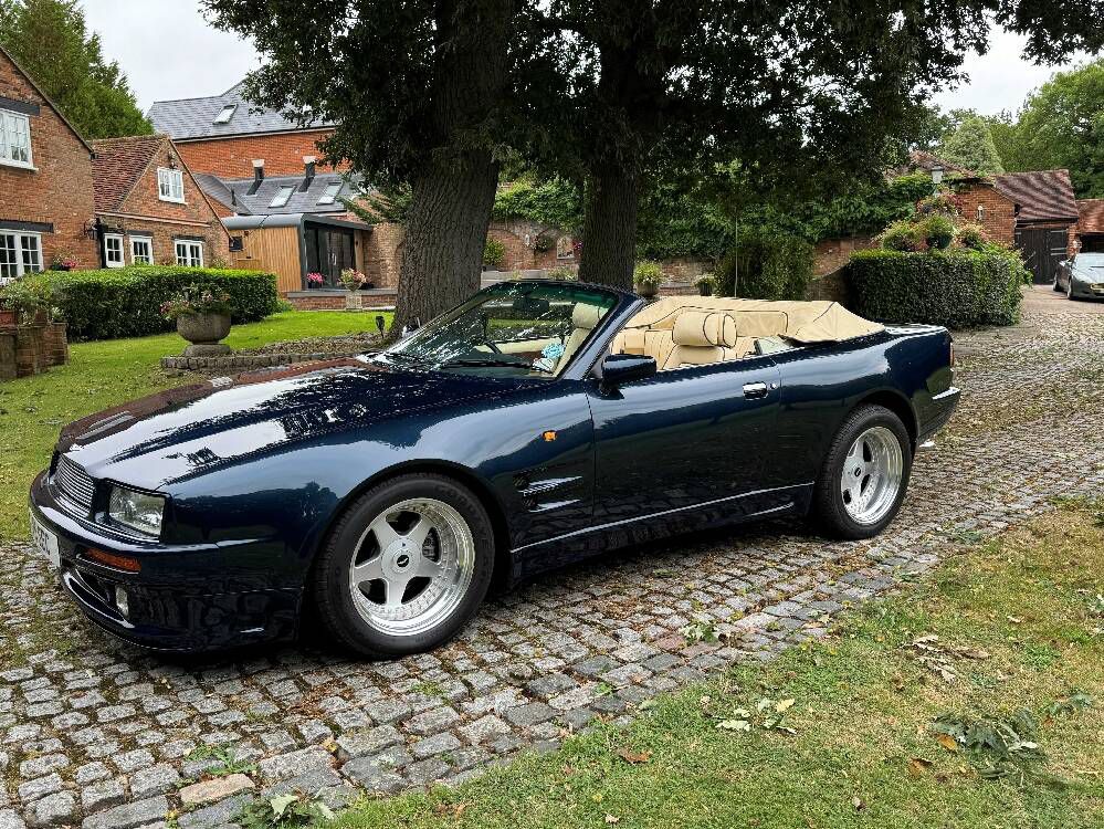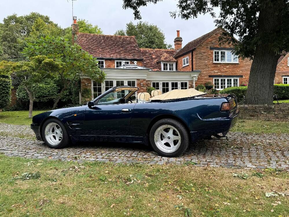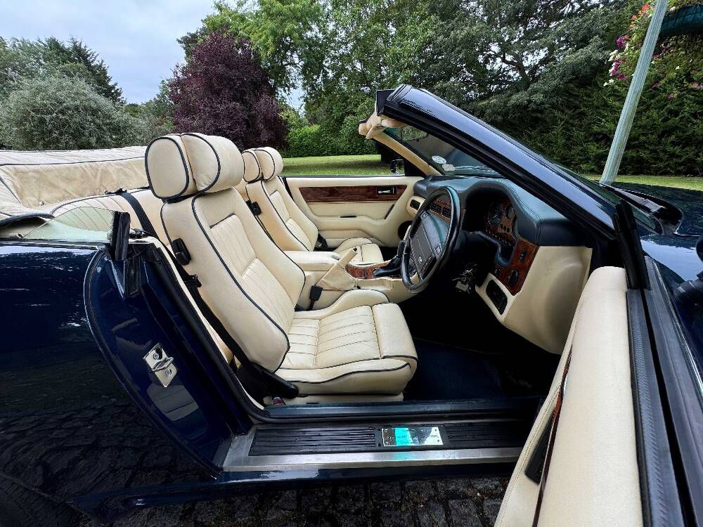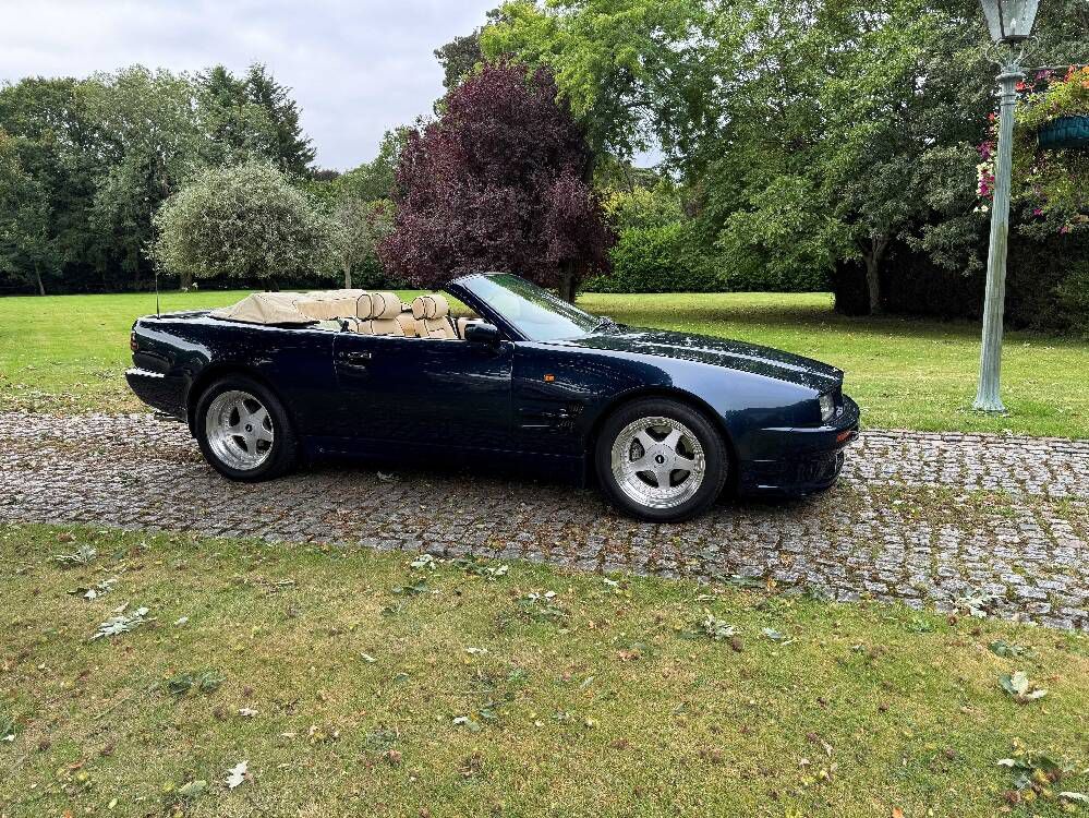 1997 Aston Martin Virage (Wide Bodied) Volante finished in Oxford Blue with Cream hide interior piped in blue with best quality Wilton carpet throughout, complimented with high gloss Walnut veneered dash and door cappings. This beautiful three owner motor car was owned by the second since the car was only one year old and was sold by us to the third owner 2 years ago has covered only 25,000 miles from new. At a cost of £3,600, it is fitted with freshly refurbished 3 piece OZ wide alloy wheels which are like new. It has a dark blue mohair electric soft top, with beige Alcantara headlining and a cream leather hood cover for use when the hood is lowered. It has a comprehensive specification for a car of this age with heated electric seats, fully adjustable steering column, electric mirrors and an Alpine Hifi system with CD facility. The car has a comprehensive service history and all of the service stamps are from officially appointed Aston Martin agents. Prior to our sale in 2022, the car had remained unused since 2017 and was in need of recommissioning, all of which was undertaken by R.S. Williams in January that year and amounted to just over £21,000. Within the car's history file are detailed invoices that correspond with the service stamps. Only 233 Virage Volante’s were ever produced but this car is much rarer with the wide bodied cosmetic upgrade carried out when new by “Works Service”. This is a great opportunity to acquire a low mileage, low ownership rare motor car with excellent provenance at what we consider is below market price. Not to be missed at £79,950