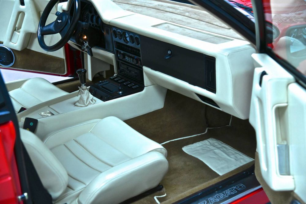 The squared off grille was especially controversial. The Zagato was powered by a 430 bhp (321 kW, 436 PS) V8 engine with twin choke Weber carburettors.
