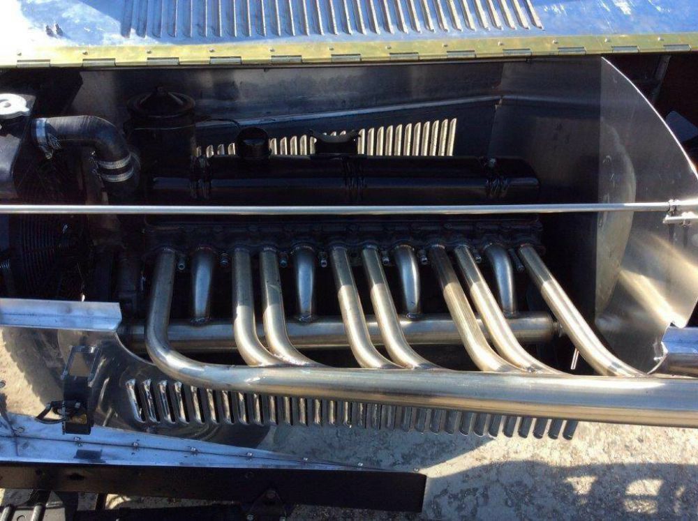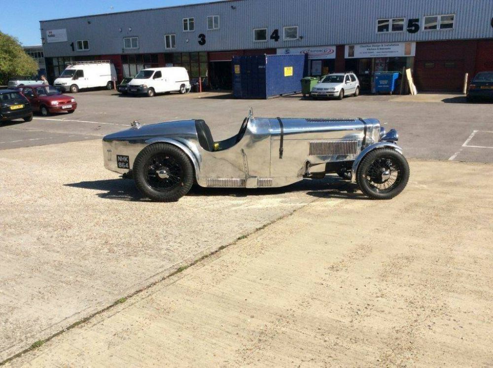 This vehicle was built in England in 2020 and is a replica of a corresponding vehicle that competed in at least one race at Brooklands.The original vehicle no longer exists. The chassis comes from an Austin 12 truck, the engine is a Buick Streight Eight (8 cylinder in-line engine with 4.8 liter displacement). Transmission comes from Ford. The body is handmade from aluminum and was reproduced from photos of the original. Due to the extremely good workmanship, no paintwork was applied. The engine also has a supercharger, which is correctly mounted in front of the radiator. Despite the enormous length of almost 5 meters, the car weighs only 1140 kg. The driving performance is correspondingly high, a cruising speed of 160 km/h on the highway is easily possible. The sound is infernal, more like a WW2 aircraft with a radial engine. The vehicle is registered in England and is also driven with English license plates. The Austin is type-approved and also registered in Austria (license plates are on file). Mileage since construction < 3000 km. If required, there are several more photos, also of the body in England.