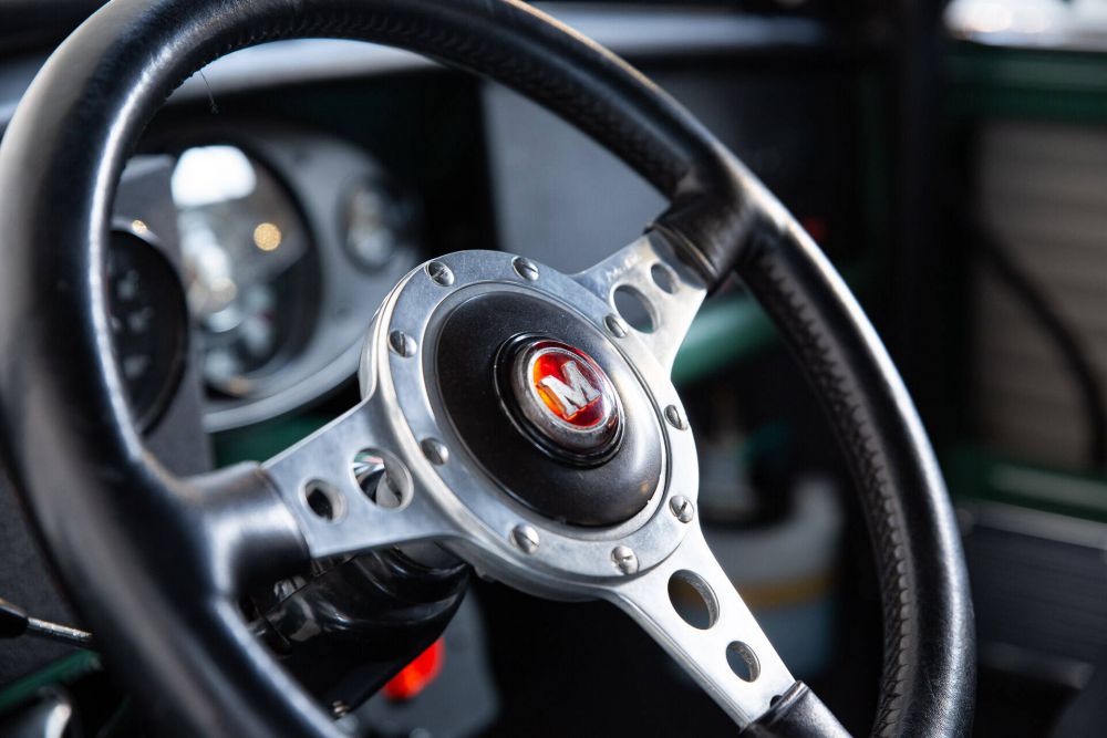 This original Dutch car was bought a few years back as a project, and then underwent the full monty. I would like to tell you what has been done to make this by far the coolest Mini in the world. At TopHat classics, the car was completely stripped, and restored as William Morris had conceived it. Then smeared with industrial KTL coating against rust further done by a restorer from Aston Martin. After this, this seemingly cuddly Mini had 150PK injected with a 1275cc rally block.