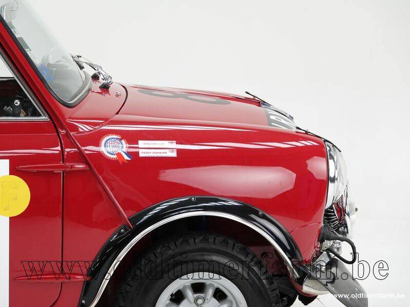 This truly magnificent tribute car may be tougher, better, and stronger than the original. Upon entering, you feel the competition spirit and the ruggedness of professionally prepared rally cars. When you start the engine, the Weber carburetor roars 'I want to go,' giving you goosebumps. Now on off-road tires with limited grip on regular roads, it remains precise and versatile. It makes you feel like you can master it, taking you through every turn at any pace you like. An incredible and probably once in a lifetime opportunity to own a part of Mini history ‘on the button’ ready to use.