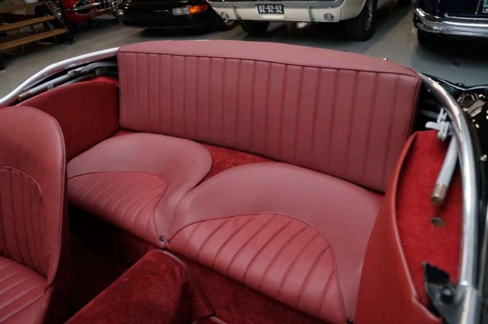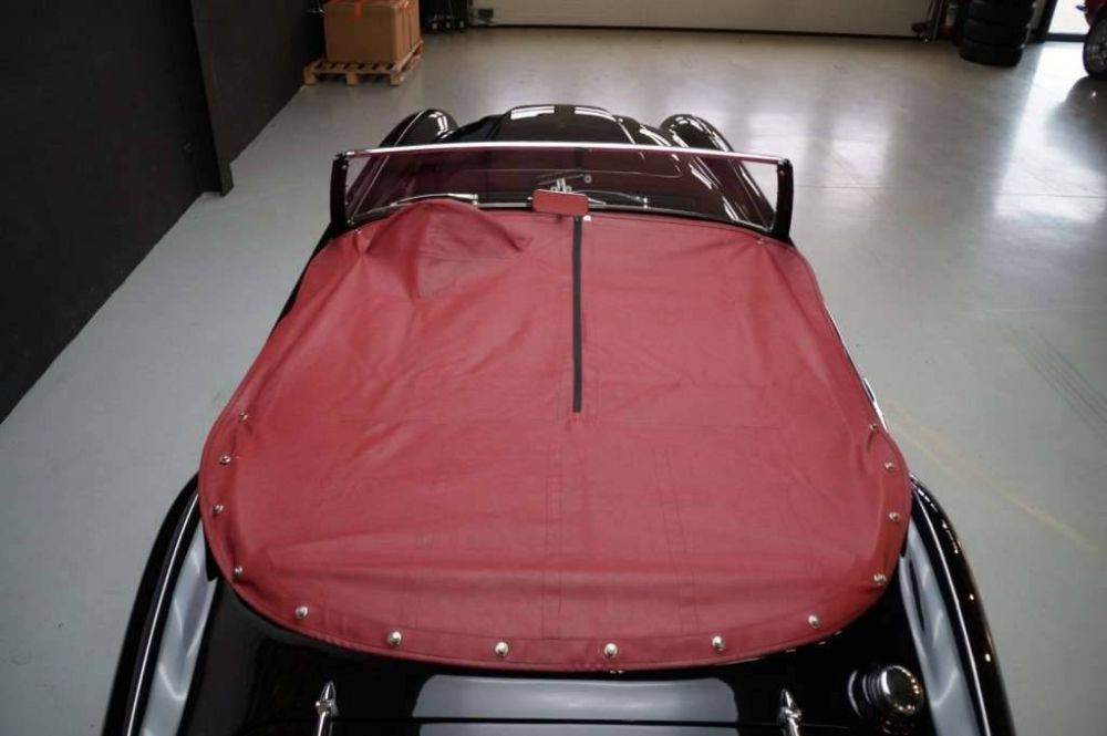 Het rode leer op alle 4 stoelen, deurpanelen en het dashboard is in uitstekende staat. Achter de stoelen bevindt zich een gloednieuwe kap en de zijramen zijn te vinden in de kofferbak. De wagen wordt geleverd met een tonneau cover voor eenvoudig en snel sluiten.