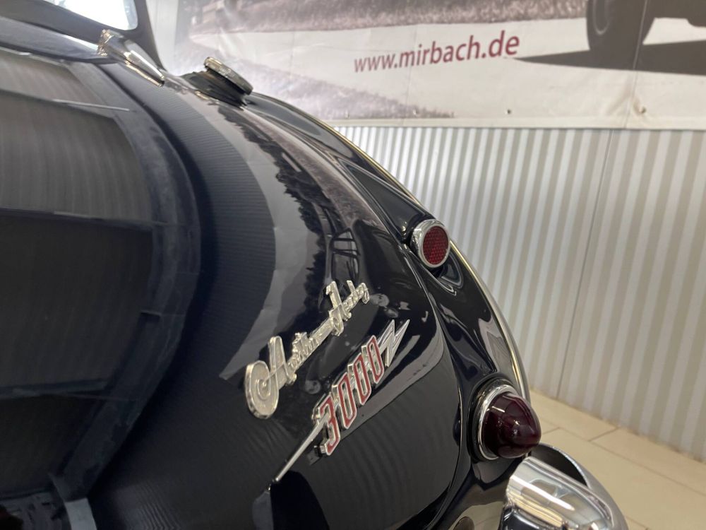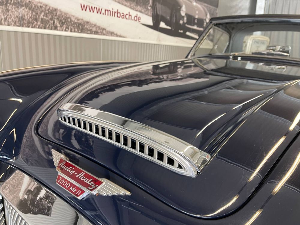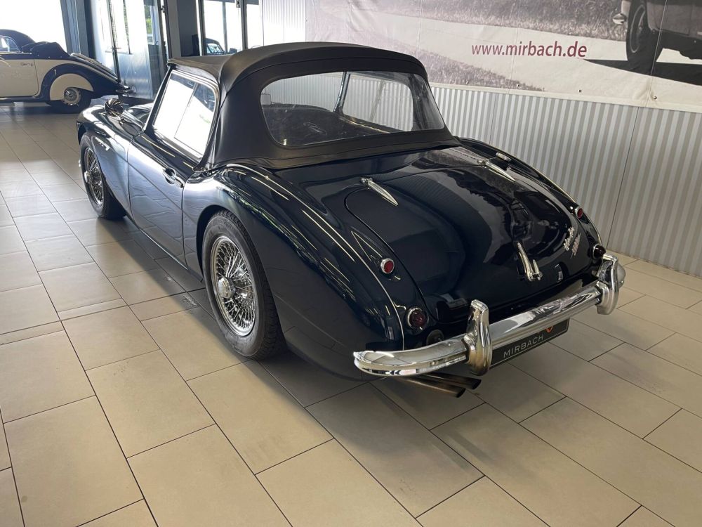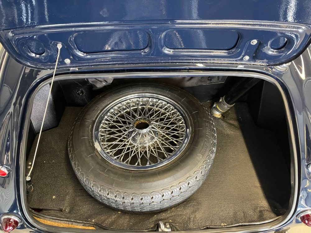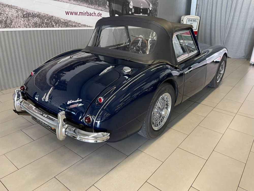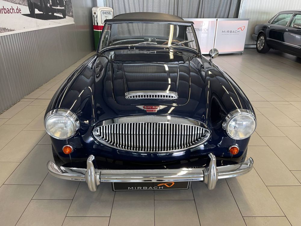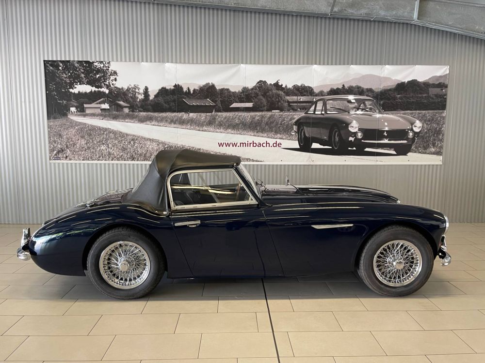 Dieser dunkelblaue Healey 3000 MK2 ist einer von 355 je gebauten Healey BN7. Nur 155 davon wurden mit dem kurzen Mittelschalthebel gebaut, wie alle späteren Healeys ab 1962.