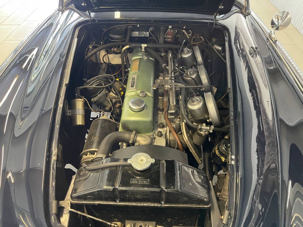Der Motor ist ein Originalaggregat, wenngleich kein Matching-Numbers, d.h. es ist ein originaler 3-Liter 3-Vergasermotor aus einem Healey MK2 aber nicht das Exemplar, mit dem dieser Healey 1962 in San Franzisco ausgeliefert wurde. Der Motor wurde beim Wiederaufbau sogfältig bearbeitet, so daß die Motorleistung eher nach oben streuen dürfte.