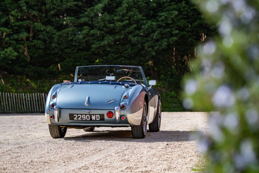 The bumpers were also removed at this time, giving the car a look that evokes period racing Healeys, but they’ve been retained should a future owner wish to reinstate them.