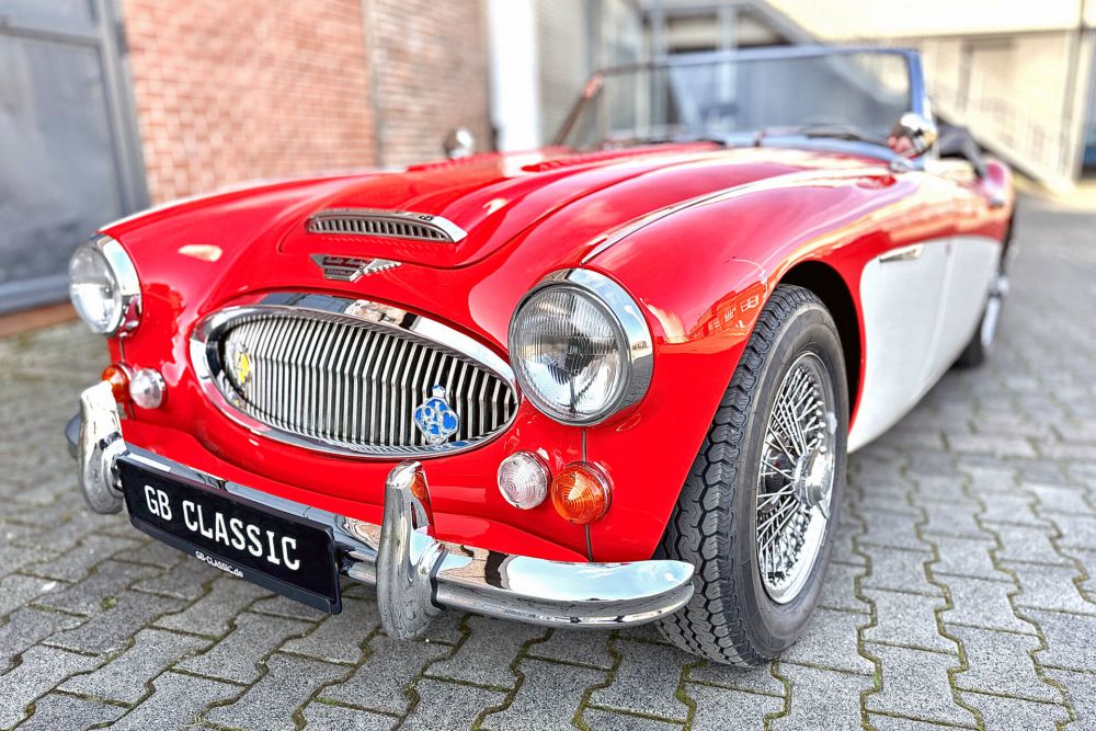 Dieser Austin Healey 3000 BJ8 ist seit über 32 Jahren im Familienbesitz und soll nun verkauft werden. 1992 erfolgte der Import aus den USA und anschließend eine aufwendige Frame Off Restaurierung in Deutschland. Motor & Getriebe sind ebenfalls überholt worden. Der Wagen steht schön dar und die ganz leichte Patina steht dem Auto hervorragend. Der Motor läuft äußerst gut und der Healey marschiert ordentlich nach vorne. Im Oktober 2023 war der Austin bei uns der Werkstatt. Neben einer großen und diversen technischen Arbeiten, wurden auch die Reifen erneuert. Die nächste HU ist im Oktober 2025 fällig.Dieser Klassiker kann - nach vorheriger Terminvereinbarung - in meiner Ausstellung besichtigt werden. Sie haben Fragen zu diesem Angebot? Ich freue mich über Ihre Kontaktaufnahme! Der Verkauf erfolgt im Kundenauftrag unter dem Ausschluss der Gewährleistung.