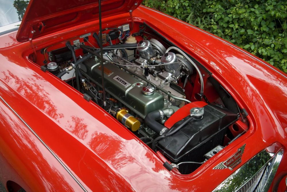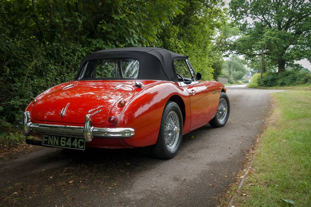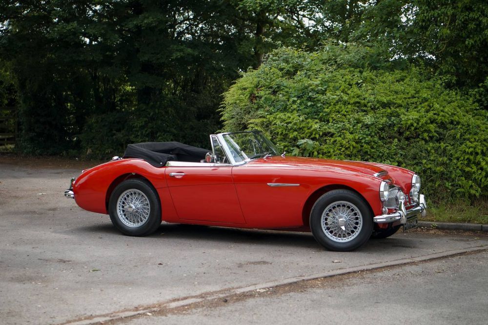 During the cars restoration it was painted its current colour scheme of Red with Black interior. This final and most powerful incarnation of the ‘Big’ Healey has had a full lead-free conversion, and is fitted with an uprated fuel pump, high torque starter motor, electronic ignition, adjustable steering column, Derrington Steering Wheel, Overdrive, Large Bore rear exit exhaust silencer system. 60 spoke chrome wire wheels fitted with Avon CR6ZZ tyres. Black mohair hood, tonneau cover & envelope.