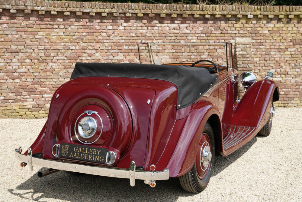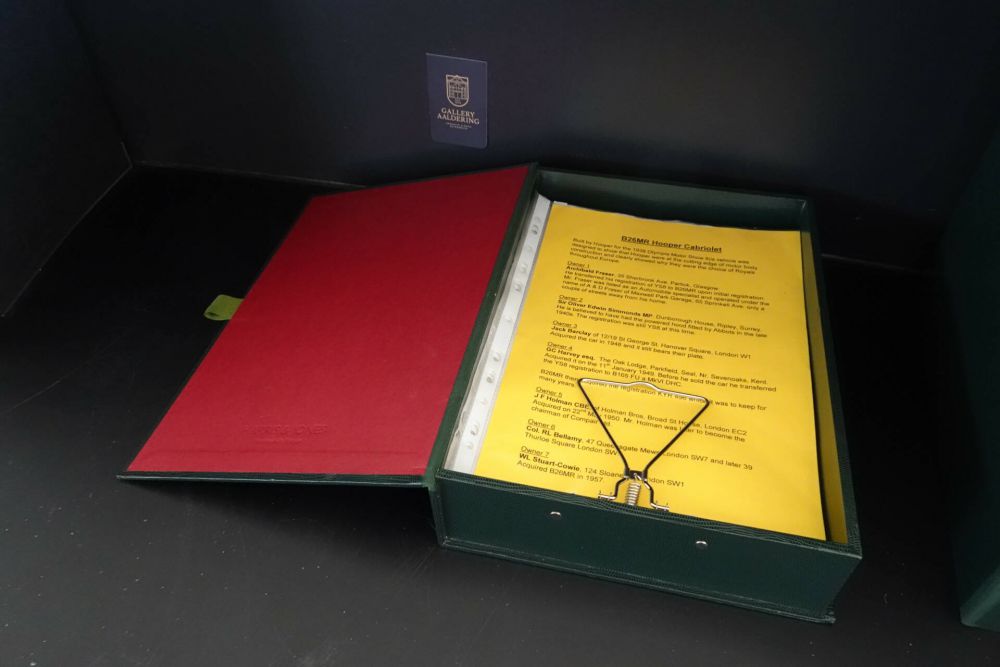 At Gallery Aaldering, we have a beautiful 1938 Bentley Drophead Coupe in our collection. The vehicle has undergone an extensive restoration and overhaul by the renowned marque specialists Alpine Eagle, resulting in a great condition. This Bentley, originally Hooper’s London Olympia Motor Show car, was delivered to Archibald Fraser Esq in Glasgow after the show. In 1942, the car was transferred to Sir Oliver Edwin Simmonds MP in Ripley, who had an electric/hydraulic hood mechanism installed by Abbotts of Farnham.