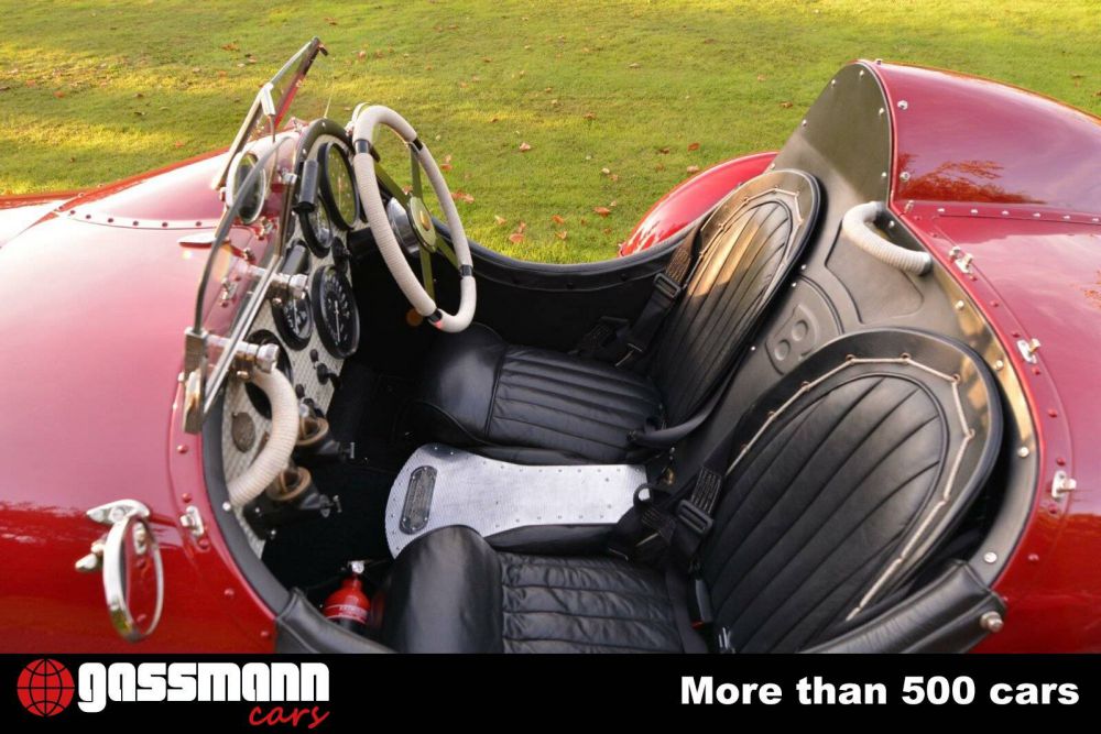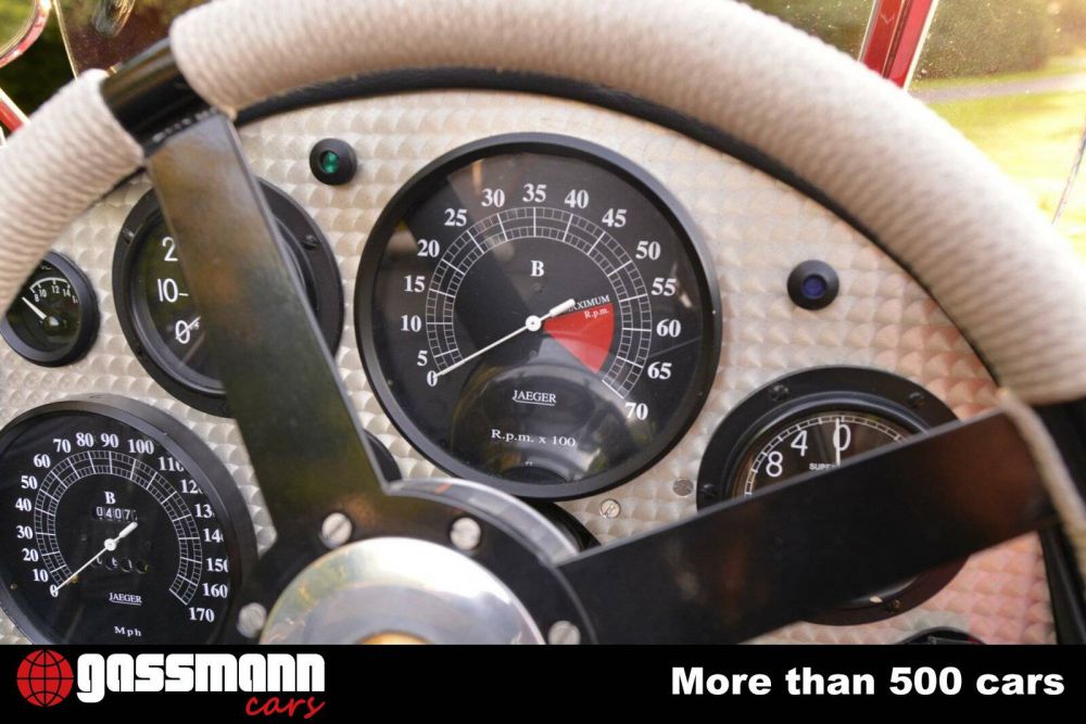 The basis for the car is a Bentley R type chassis from 1953. The chassis is clad with a muscular aluminium body with bulges louvres & air scoops wherever you look. Accommodation is for two on black leather Bentley style bucket seats. The dash is of machine turned aluminium & contains the usual quotient of instruments including a large rev counter & 170mph calibrated speedometer.