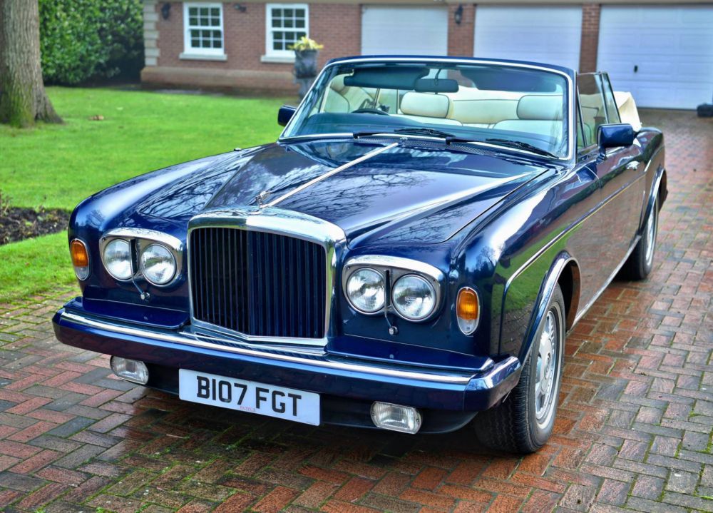 1985 Bentley Continental Convertible. Vin Number: SCBZD0009FCH09440 Registration Number: B107FGTa Rare & beautiful. This is one of the first cars built to continental specification after the Corniche name was dropped for these convertible Bentleys. Moreover it was the Birmingham Motor Show car for Rolls Royce at the time. The car comes to us with a simply massive set of invoices in a very very thick file. The servicing expenditure over the years has been huge & done without regards to cost by assorted speciaiasts including Clarke & Carter & Royce engineering more latterly. We have only photographed a small portion of the bills that come with the car. Finished in Royal Blue the car presents beautifully. It has always been garage kept & has not been used in inclement weather at least for the last 10 years of onwership. Current mileage is just 75,000 from new backed up by service history & MOT certificates. To the interior is piped cream leather & burr Walnut to the dash board. A drinks flask & glasses are located in a lockable cubby hole in the Drivers door. The roof is of Blue Mohair & glides up & down at the touch of a button. Under the bonnet the engine bay is pristine with all nuts & bolts on ths suspension towers looking like new with no furring or corrosion whatsoever. The original leather hood bag comes with the car & fits easily & snugly over the hood. These continentals are rare birds with only a little over 400 units having been produced making them far more scarce then the far more prolific Rolls Royce Corniche equivalent. It is a car ready for immediate use & wanting for nothing. On the road it drives beautifully with ample power & smooth imperceptible gear changes allied to supple suspension. The huge history file promises for trouble free motoring for the next lucky onwer.