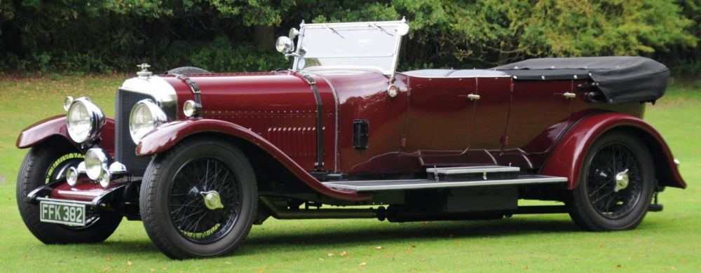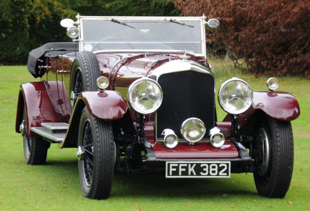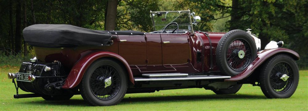 The car is finished in deep maroon paintwork, a refreshing change from the more usual green. The interior is black hide thoughout with matching black carpets. The body takes the form of a commodious open tourer with an auster screen affording a degree of protection to the rear occupants. A large cream coloured hood easily erects for inclement motoring conditions. To the front of the car are large headlamps, a central spot lamp & a pair of period trumpet horns along with the De Rigeur chicken wire radiator grille. Call Richard Biddulph. Mobile ++44 (0) 7967 260673