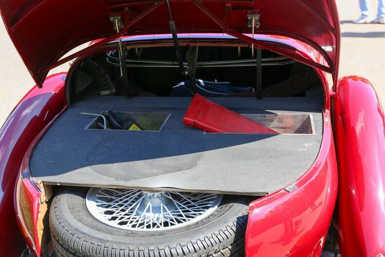 The disc brakes upgrade significantly improves the car's stopping power, adding a crucial modern safety feature to this classic beauty. The hood and tonneau cover are in excellent condition, providing both protection from the elements and a stylish finish. The wire wheels are a nod to the car's vintage roots, adding to its elegant aesthetic appeal.