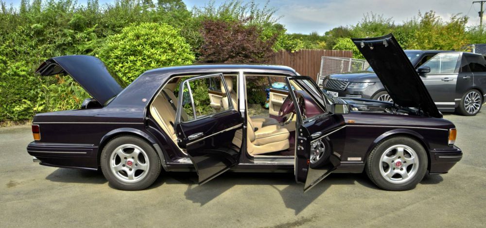 1997 Bentley Turbo RT Chassis Number: SCBZP23C0WCH66277 Registration Number: R158PJW Just 14,754 Miles from new & as close to perfection as you can find. This Turbo RT was delivered new in December of 1997 & presents as new having been barely used. The car is finished in black garnet mica which looks black at night but has a purple hue when seen in sunlight. To the interior are Sandstone hides with wildberry piping & dash top roll. Burr walnut was specified for all interior woodwork. The car comes with a good set of recent bills showing it has been carefully maintained. It also spent some time in the Jaguar Heritage collection until that was disbursed. The current onwer seached long & hard to find simply the best available example he could find. I would be surprised to find one with lower miles then this example. In addition to the books & service bills is a remote for the sound system so it may be operated from the rear seats. There is also a telephone located in the rear passenger armrest. The factory demo tape & CD also come with the car. When new the car was supplied with a second battery mounted in the boot. Pushing a boot mounted button allows the user to switch between the two. The car was serviced this year just 200 miles ago so is bang up to date & ready to be used.