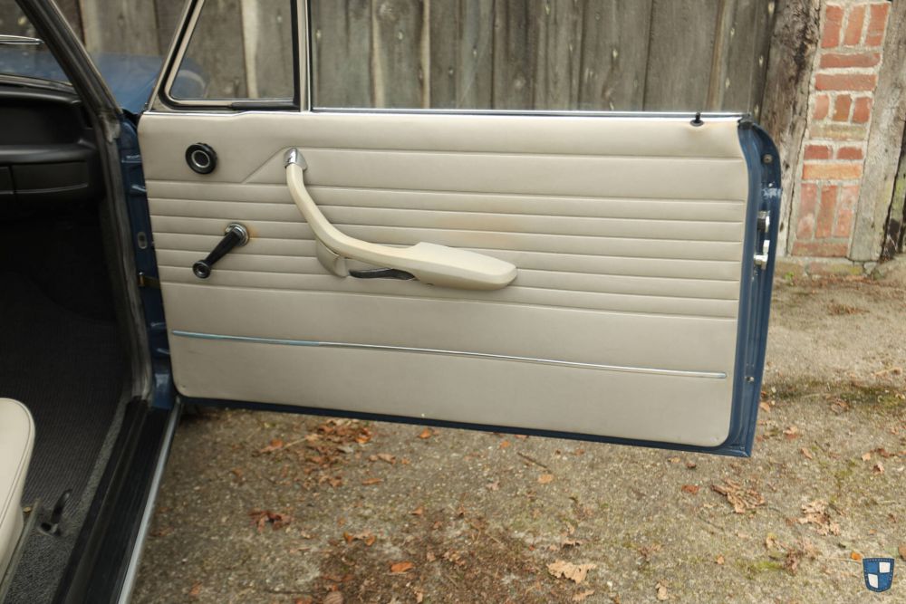 The interior is beautiful and all original. Original grey vinyl on the seats and rear seat. Very clean and looked after. The carpet is very clean and all original. On top a set of high quality sisal floormats. The doorpanels are straight as an arrow and the center console is all original. It even shows the original seatbelts.