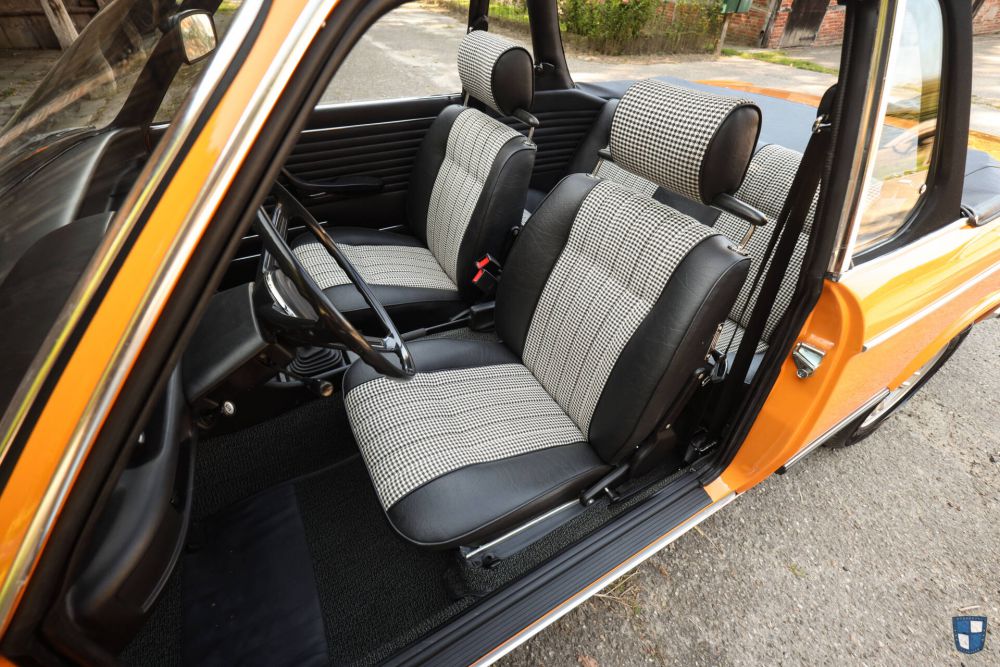 The car did need love, which we gave it. The body was stripped and it's axles and drivetrain were removed. It was beautifully repainted in it's factory shade of 002 Colorado Orange. Also the enginebay and trunk have been repainted. The body is very nice and straight. We have installed a complete new set of beltline trim, new emblems, new mirrors, new trim on the sills. The bumpers are in very good original condition. New doorbrakes, zinc-plated locks and hardware. A new windscreen was installed in a new gasket. The car makes an excellent impression. Not just the looks we're refurbished,