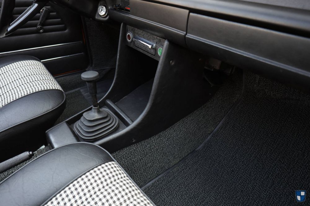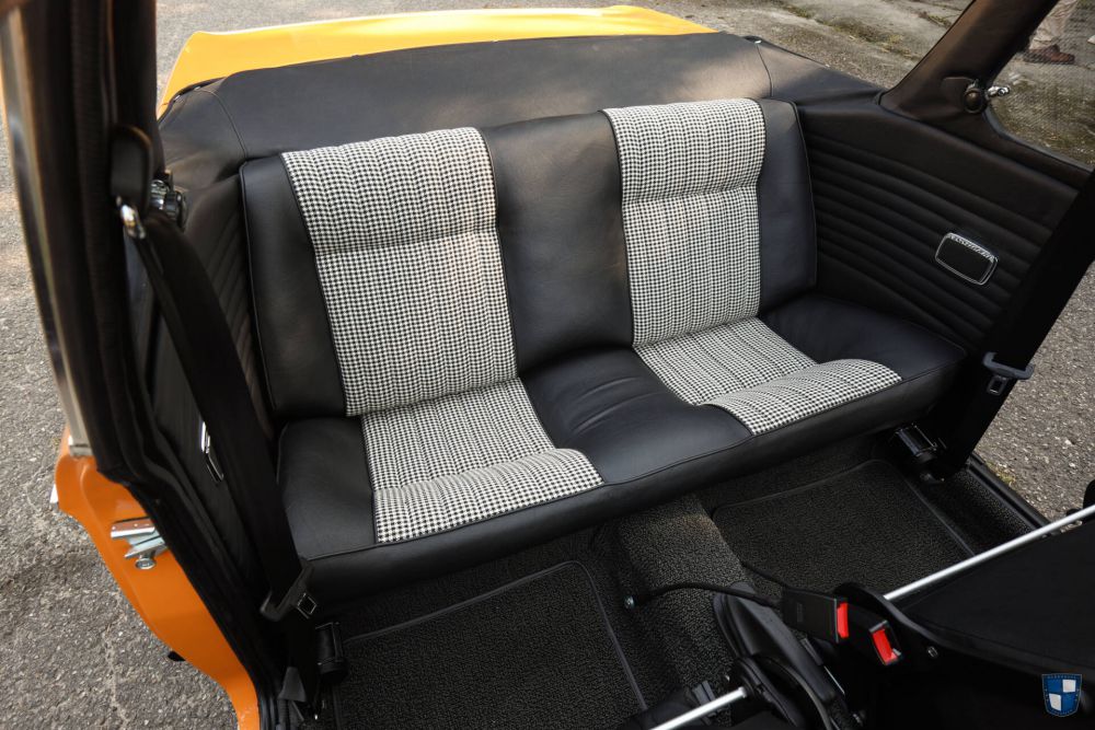 The interior received lots of love too. Completely reupholstered and gone through. A new set of carpets in the correct color. The Baur correct seats were reupholstered in new black vinyl with new black/white Pepita / Houndstooth fabric. Brand new doorpanels in the front and reupholstered panels in the rear - as Baur did it. A new set of automatic seatbelts, zinc-plated seat rails, reupholstered center console, new shifter and shifter boot, doorseals, reupholstered sunvivors - to give you an idea about the extent of the operation. The heaterbox was has been reworked and features a new heater valve and new heaterblower motor.