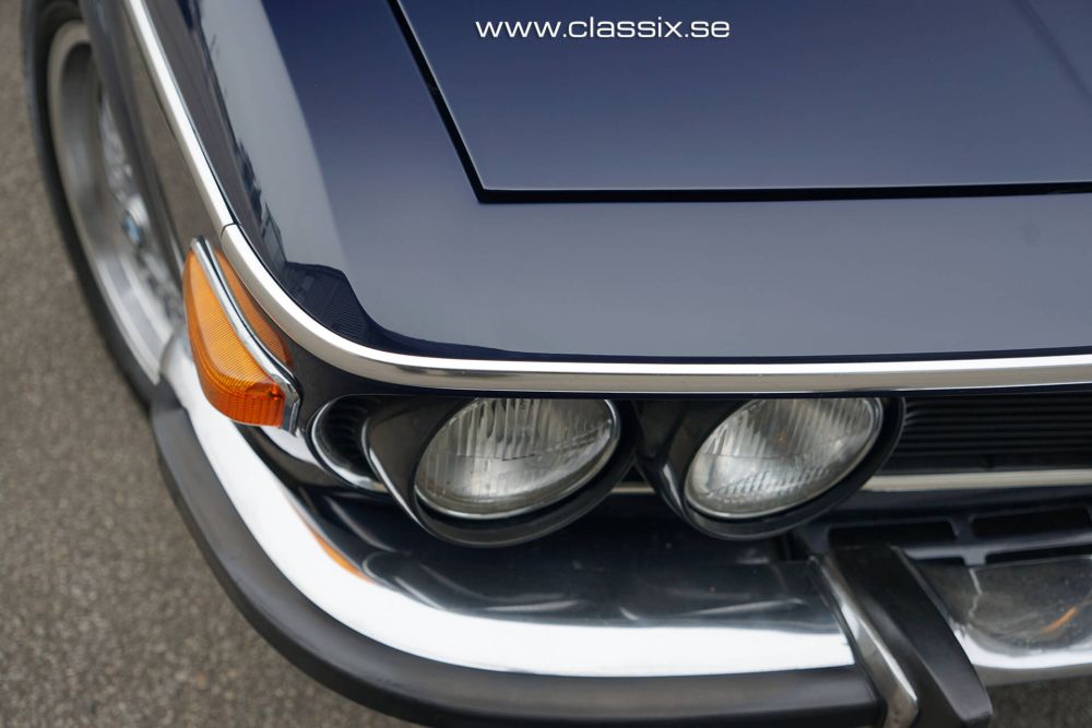 Exterior: The BMW 2800 CS looks very elegant in this dark blue (Atlantic Blau) solid color, with all the new chrome details providing a striking contrast. The paint quality is exceptionally good, with a deep and glossy finish. This car has undergone an extensive restoration and is 100% rust-free. It features excellent panel gaps all around and looks just as good underneath as it does on top. It rides on a new set of aluminum spoke wheels fitted with brand-new 205/55 R16 tires.