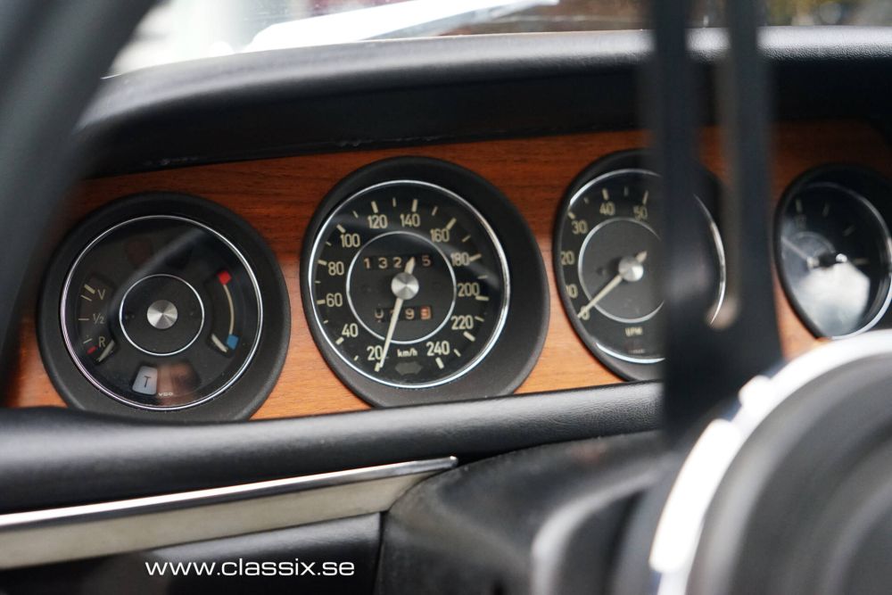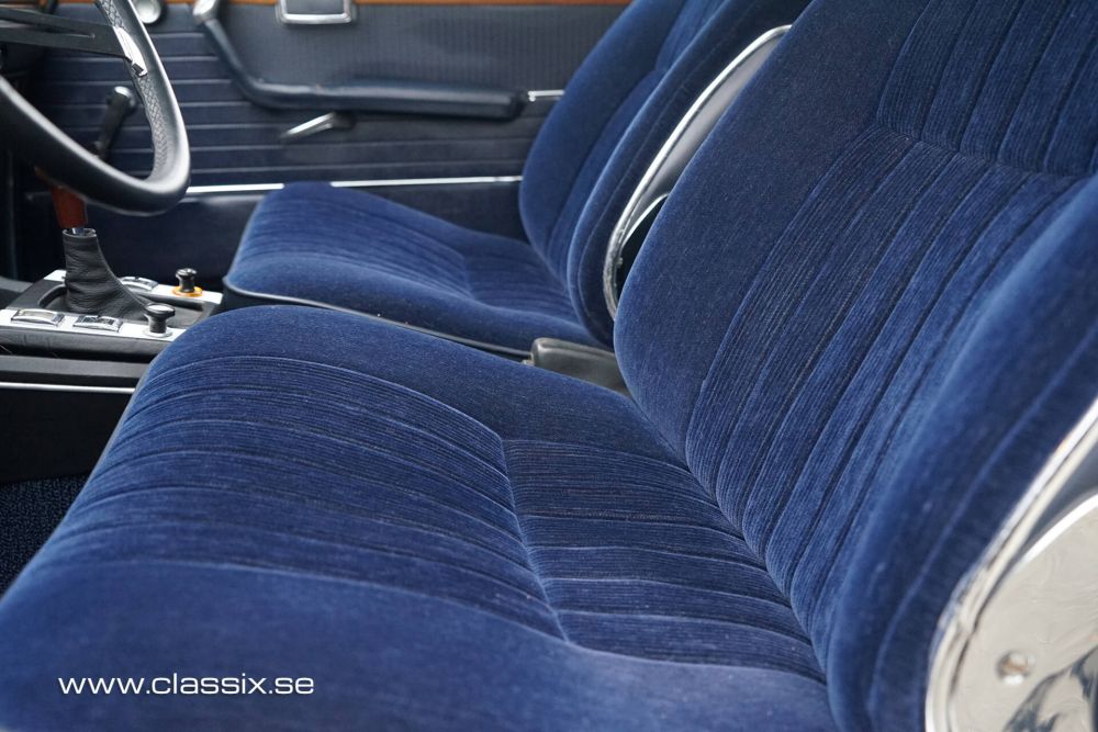 Interior: BMW used a velvet-like material in the interior, giving the car a very exclusive feel. In this 2800 CS, everything is new, including the carpet and headliner. The refurbished wood panels look amazing and add a touch of warmth to the otherwise rather strict and functional dashboard. The dashboard and all instruments are in perfect condition and fully operational. Although the BMW E9 is a coupé, it is spacious enough to comfortably accommodate four normal-sized adults.