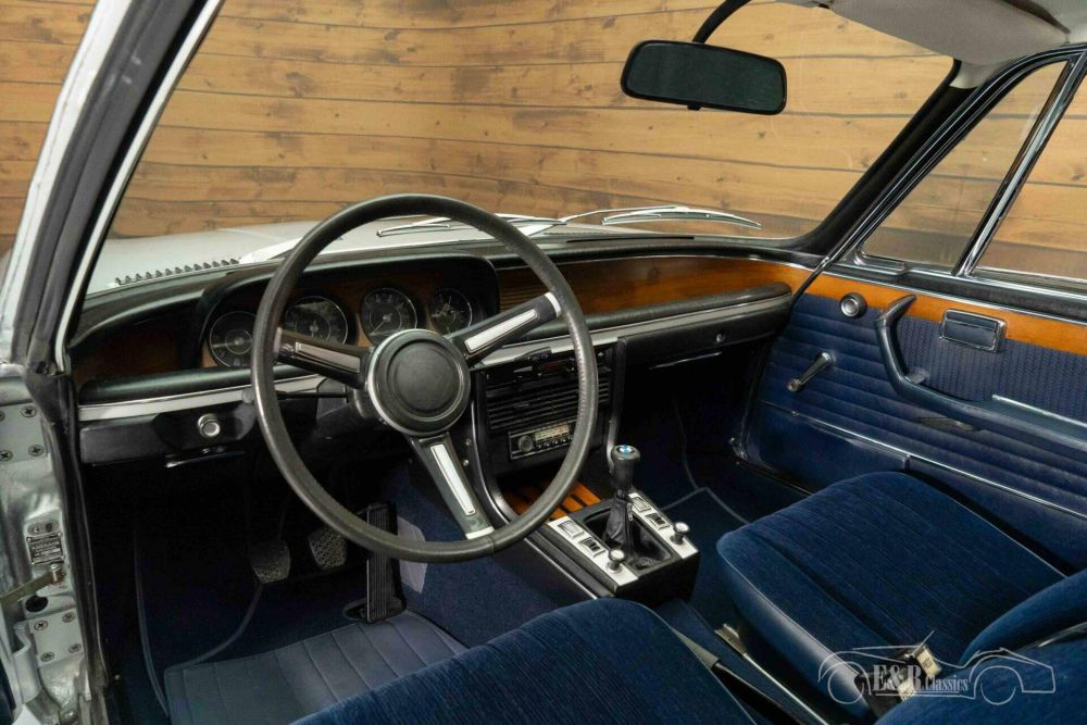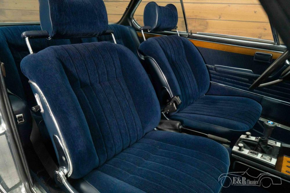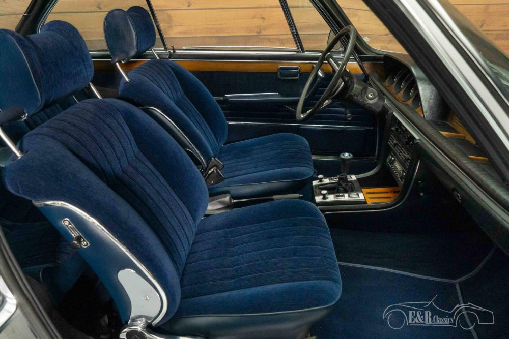 The BMW 3.0 CS that we offer for sale here is truly a sight to behold. It has a silver-grey paint that fits perfectly with a 1970s BMW and combines very nicely with the BBS rims and the dark blue interior. The interior is in neat, original condition and has dark blue fabric upholstery, a dashboard with wood inlay and period-correct radio. The BMW is also equipped with a sliding roof so you can enjoy the fresh air while driving.