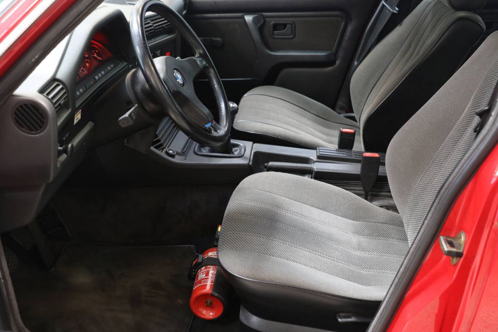 Unser BMW wurde 1987 erstmalig zugelassen. Im originalen Fahrzeugbrief sind nur drei Haltereinträge, zuerst ein Autohaus in Hattersheim, dann folgen zwei Haltereinträge. Somit befindet sich der Wagen in erst in dritter Hand. Sowohl die Karosserie als auch die Technik des Wagens befinden sich in gutem bzw. sehr gut gewartetem Zustand. Flächigkeit und Spaltmaße sind einwandfrei. Auch technisch vermag dieser E30 zu überzeugen: Aktuell ersetzt sind Bremsscheiben und Beläge, Bremsschläuche, Querlenker, Wasserpumpe, Spannrolle, Zahnriemen und Öle und Filter. Motor, Getriebe, Lenkung und Bremsen -- alles funktioniert genau so, wie man es von einem guten BMW erwartet: Fahraktiv, präzise, definiert.