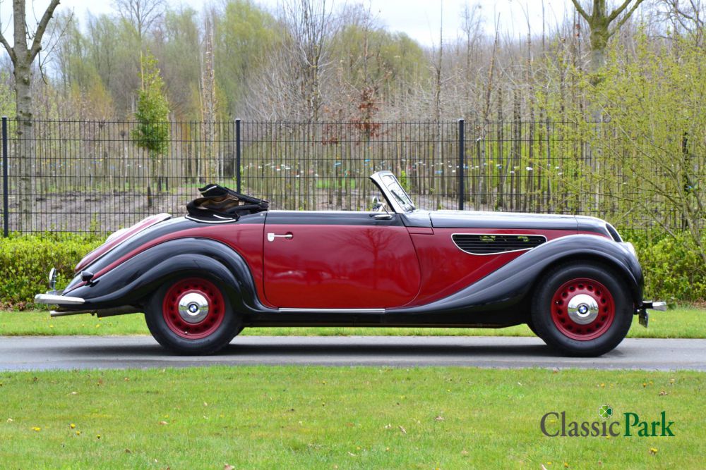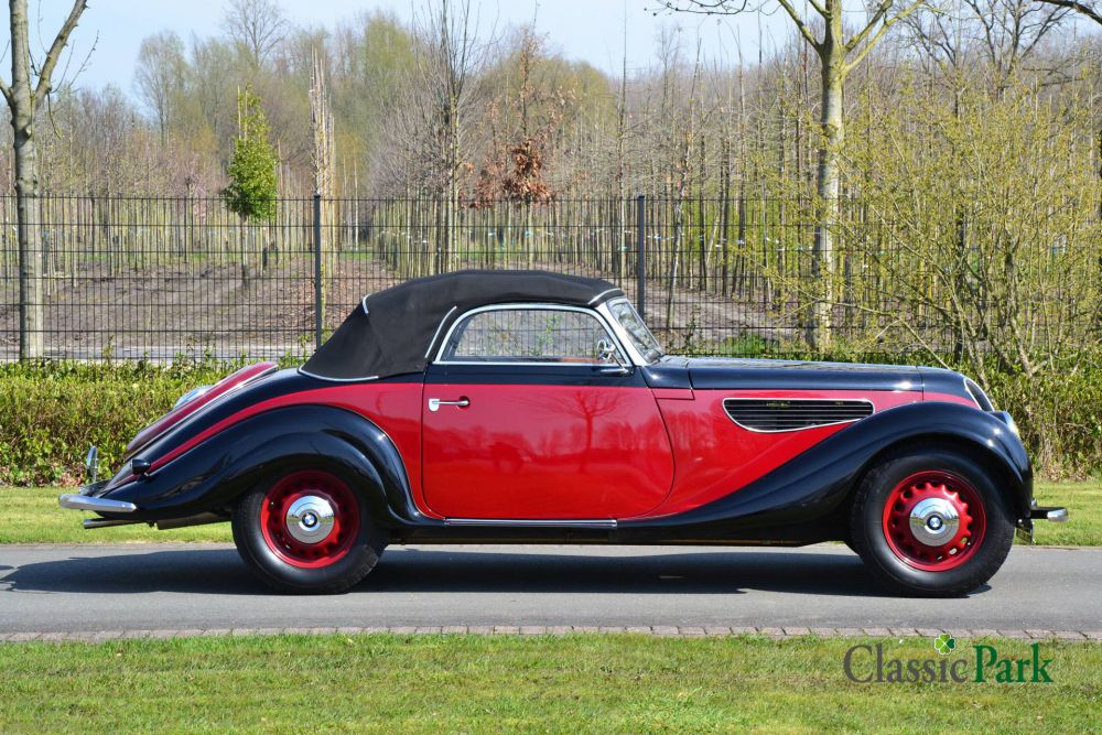 The black-red color scheme looks great on the BMW. The soft top is in excellent condition. With matching numbers of the engine and body, this is an attractive classic.