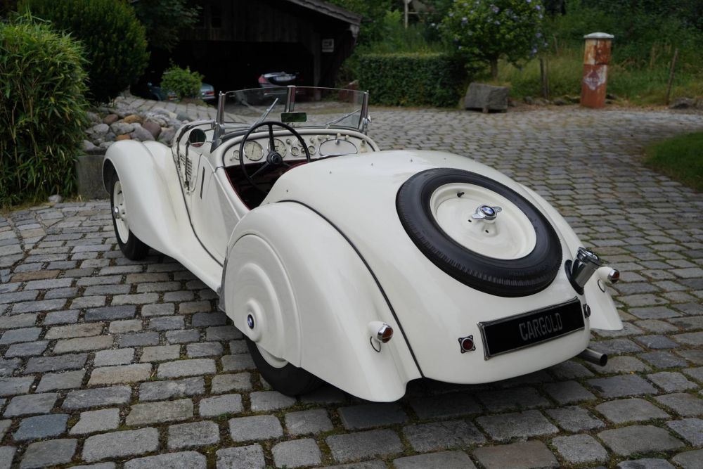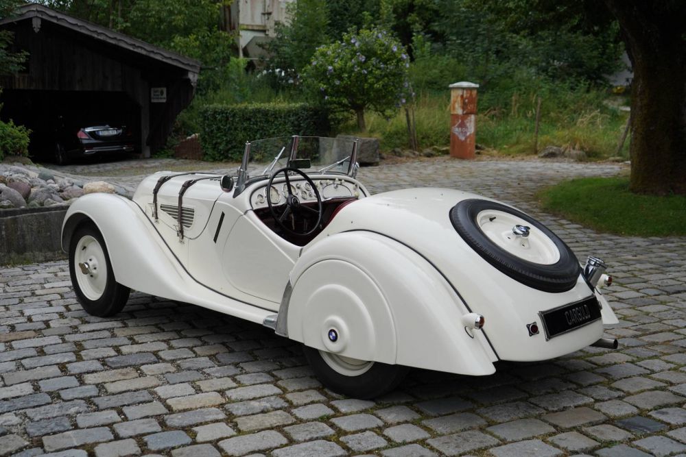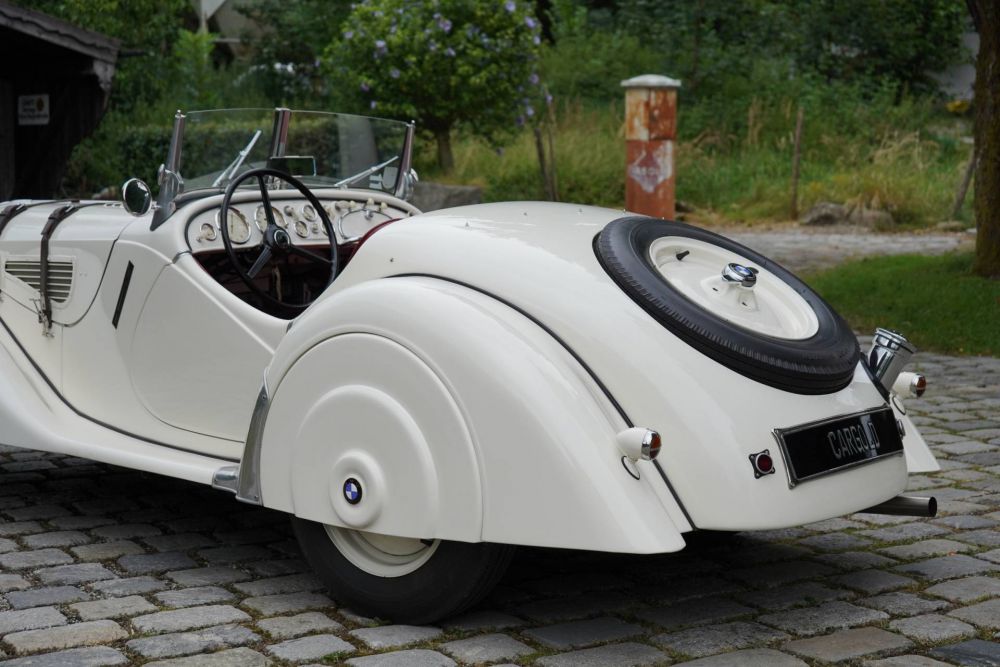 Ein alter Kfz-Brief aus den 60er Jahren, sowie das BMW Zertifikat liegen uns vor. Demnach wurde der Wagen im November 1937 mit weißer Lackierung und an Auto Becker ausgeliefert.Wir können aber leider nicht mit letzter Gewissheit garantieren, dass diese Fahrgestellnummer nicht doch noch ein weiteres Mal existiert.