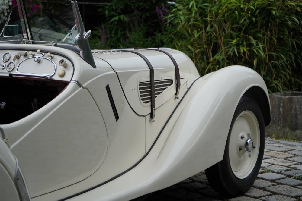 Zuvor wurde der Wagen von einem deutschen Vorkriegs-Spezialisten neu aufgebaut, wo immer es ging verwendete man Originalteile.