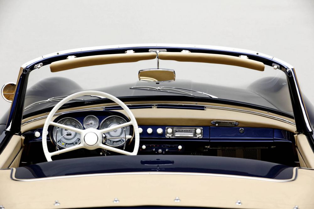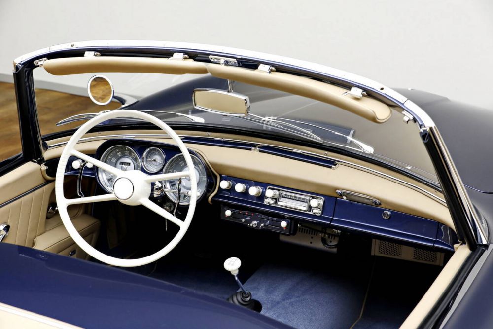 This BMW 507 is one of just 34 examples of the early Series I out of a total of only 252 507s produced. The year of 1957 makes it eligible for the Mille Miglia. The car was completed at the factory on the 3 of July, making it one of the last examples of Series I to be built. A week later, it was delivered to the BMW dealer Automag Buchner & Linse in Munich. The original colour scheme of the delivery was Papyros white with a red leather interior. A confirmation from BMW Classic regarding the original delivery condition is available. The first owner (name known) in Frankfurt did not keep the BMW for long and sold it to the second owner (name known) in April 1958. In 1963, the car came to its third German owner (name known), who drove and maintained it regularly. It remained there for a whole 51 years (!) – half a century. During this time, the car was presumably painted in turquoise green, which it retained for a long time. All German owners are recorded in the available original German registration document (Fahrzeugbrief). It was not until 2014 that the fourth owner (name known) in Canada acquired the car. Three years later (2017), the sports car was passed on to its fifth owner (name known) in France. He had the car technically overhauled by BMW Classic in spring 2018. This included overhauling the original matching numbers engine and the transmission, the front and rear axles, the brakes, and the suspension, replacing all fuel and brake lines, cleaning the fuel tank, replacing the radiator, and installing a new exhaust system. However, the body and interior were left unchanged. Disc brakes had already been fitted at the front by the previous (fourth) owner to increase the braking power for better drivability. In April 2018, the car was registered with a Carte Grise and took part in the renowned Tour Auto rally in France at the end of April with start number 129. It then underwent another extensive service at BMW Classic. In 2019, the 507 was acquired by a renowned classic car dealership and underwent a comprehensive and perfect frame-off restoration in which no expense was spared. As part of the restoration, the roadster was given a stylish colour scheme in dark blue metallic with a beige-brown leather interior. This makes this 507 much more interesting than the quite common Papyrus white with red leather. The original Rudge centre-lock rims and an original hardtop complete this fantastic offer. In 1954, Max Hoffman, the general importer for German premium brands in the USA and the initiator of vehicles such as the road version of the Mercedes 300 SL and the Porsche 356 Speedster, approached BMW's development department in Munich. He saw a gap in the model range of BMW and BMW's competitors – a sporty car, ideally a convertible, that could be positioned between the very expensive 300 SL and the British sports cars. Hoffman saw BMW's 501 and 502 sedans as an ideal platform for constructing an elegant convertible with relatively little development effort. Hoffman's idea was well received in Munich, and Fritz Fiedler was instructed to develop a chassis, with the body to be designed by Ernst Loof. However, Hoffman disliked Loof's designs and insisted that the designer Albrecht Graf von Goertz create a new design. The result, named the 507, was presented at the International Motor Show in Frankfurt in the summer of 1955. The schedule development schedule had been so tight that only one of the two exhibition vehicles was able to drive. Series production would not start until autumn 1956. The car was based on the shortened frame of the BMW 502 and was powered by a V8 engine with a displacement of 3.2 litres and an output of 150 hp (a 165 hp version was available as an option). The engine housing is made of aluminium, as is the handcrafted body – a well-proportioned, slim yet athletic shape with a long bonnet and large wheels. The main market for the vehicle was North America, where Hoffman believed he could sell over 1,000 units per year. However, the car was also available in Germany for 26,500 Deutschmarks. That was 5.5 times the annual salary of an average worker. The car was very popular in international high society, though, with celebrities such as Fred Astaire, John Surtees, Elvis Presley, Aga Khan, Alain Delon, Hans Stuck, Ursula Andress, Prince Rainier of Monaco, and Crown Prince Konstantin II of Greece among the elite group of owners. Count von Goertz also secured himself an example. Despite this good publicity, the car was not a commercial success for BMW, but made a loss with every unit. This was part of the difficulties that put a financial strain on BMW, requiring an investment by the Quandt family to save the company. In total, only 252 examples of the 507 were manufactured between 1957 and 1959. Today, 220 examples are still known to exist, five of which are in BMW's own car collection. Many years later (1999), the 507 was the inspiration for the BMW Z8 – a modern interpretation of a roadster based on the classic model. The fact that the 507 was not a real success in its day pays off today, with the small number of units built making the BMW 507 all the more valuable and sought-after. With its combination of high exclusivity, elegant yet sporty design and high driving potential, it is a German automotive icon from BMW. The BMW 507 is recognised as one of the most beautiful sports cars in the world, and rightly so. This example is an impressive proof of this and lives up to the title. In excellently restored condition, this 507 can even be presented and enjoyed as a participant in the Mille Miglia. Its 1957 year of construction makes it possible. Of course, such an exquisite and renowned sports car is also a welcome guest at other important classic car events such as the Tour Auto or the Concorso d'Eleganza Villa d'Este.