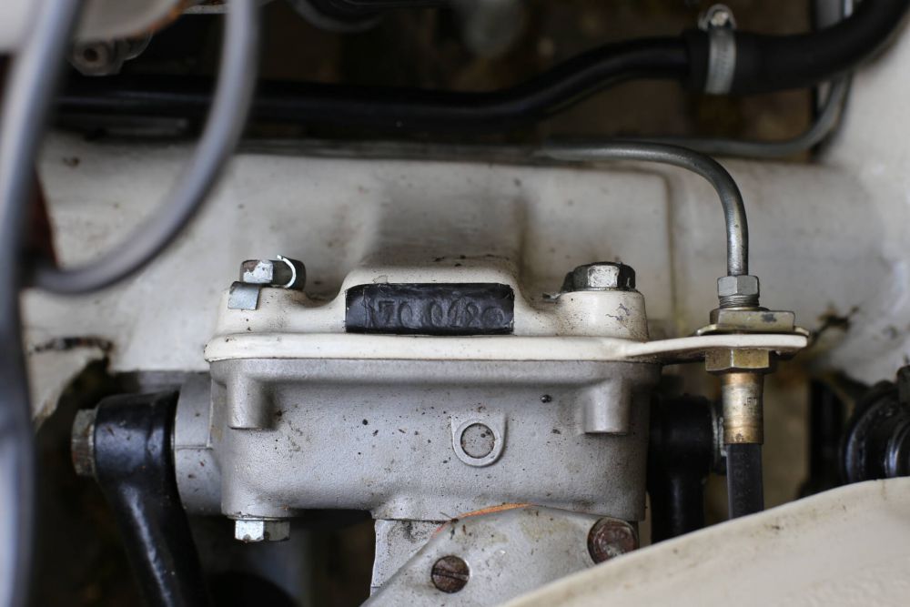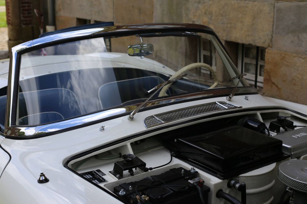 The original engine, number 40020, was completely overhauled, and a new factory-boxed 11-bolt Series II engine was installed for improved drivability. The original engine is still available and can be refitted. The original red interior was replaced with blue leather featuring white piping, though the original red interior is still available. A new blue mohair hood was fitted. An original factory hardtop, still in its original box, was professionally installed. Rudge alloy wheels were added during the restoration in 2011. The car was converted to front disc brakes, with the original drum brakes still available.