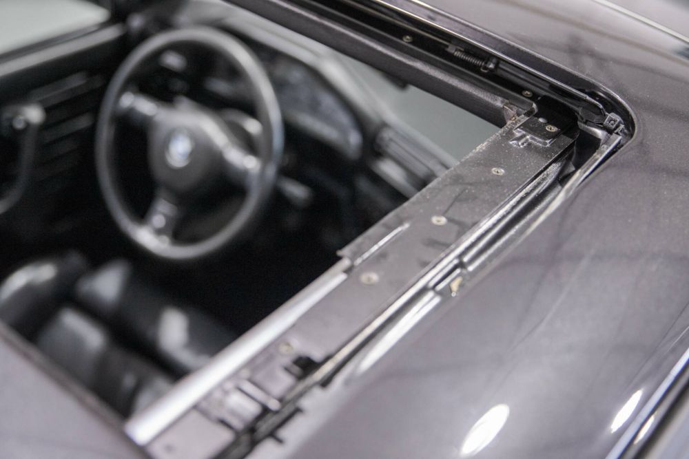 This classic M3 in Black Diamond Metallic was purchased in Germany in January 1987 and arrived in Portugal in 1995. It is equipped with three-piece BBS RS rims, which greatly enhance its 80s look, electric sunroof, black leather upholstery and features a complete tool kit and Bavaria C Electronic radio with code.