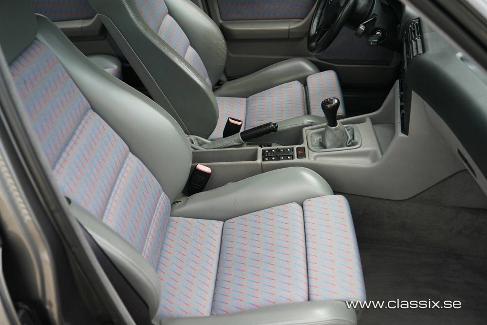 Interior: The interior of this BMW E34 M5 has been well-preserved. Sitting in the half-leather, half-cloth seats, you can instantly tell that it is a low-mileage car. The firmness of the seats tells a story of the few kilometers covered by the car. They also have minimal visible wear, just like the steering wheel and gear knob. The carpets are in nice condition, and the car retains its original BMW rubber floor mats. All interior details of the car are in great condition and function as they should. Inside, you find a few modern features like heated seats and climate control, both of which are fully functioning.