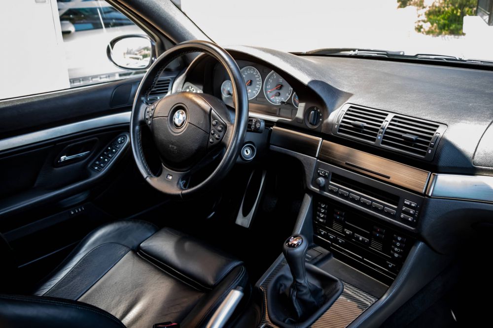 The example we are presenting today is an E39 M5 delivered new to the BMW Laval center in France, in August 1999. The car sporting a Carbon Schwarz paint associated with a black leather interior and has many options such as the electric sunroof, the hifi system with 6 CD charger, the alarm or even the electric heated seats with memory. The complete list is visible below. Maintained exclusively in the BMW network, this M5 E39 has only 54.500 km and is in an excellent state of conservation.