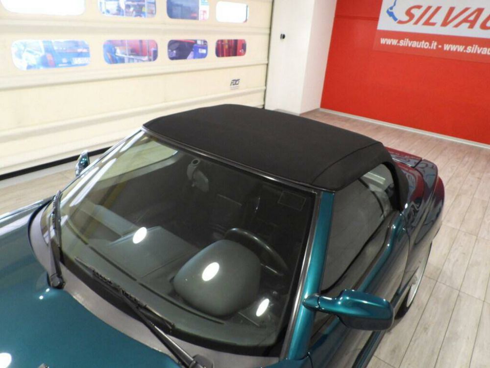 Anatomical seats in gray and green leather and alcantara, Original three-spoke steering wheel with leather rim, Electric windows, Blaupunkt Boston RCR 128 AM/FM cassette radio, 7-spoke light alloy wheels with 225/45 ZR16 tires, Double electrically adjustable mirrors in body color, Electric windows, Black canvas hood, Spare wheel.
