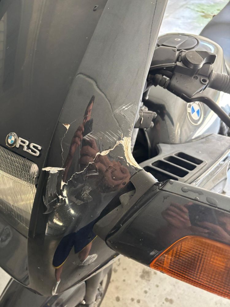 The bodywork shows some signs of wear and tear. One mirror is cracked due to an impact and the windshield has a crack caused by another motorcycle that fell on mine, hitting my windshield with its handlebars. The damage is only cosmetic, as the windshield still works perfectly and is very easy and inexpensive to replace.